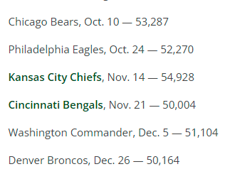 Allegiant Stadium event attendance records filed with the Las Vegas Stadium Authority showed that the actual attendance at Raiders games in October, November and December was in the 50,000-55,000 range at the 65,000-fan domed venue in Las Vegas. There were literally thousands of empty seats at Raiders home games even though those seats were purchased. Here were the turnstile counts for Raiders home games in the 4Q of 2021: