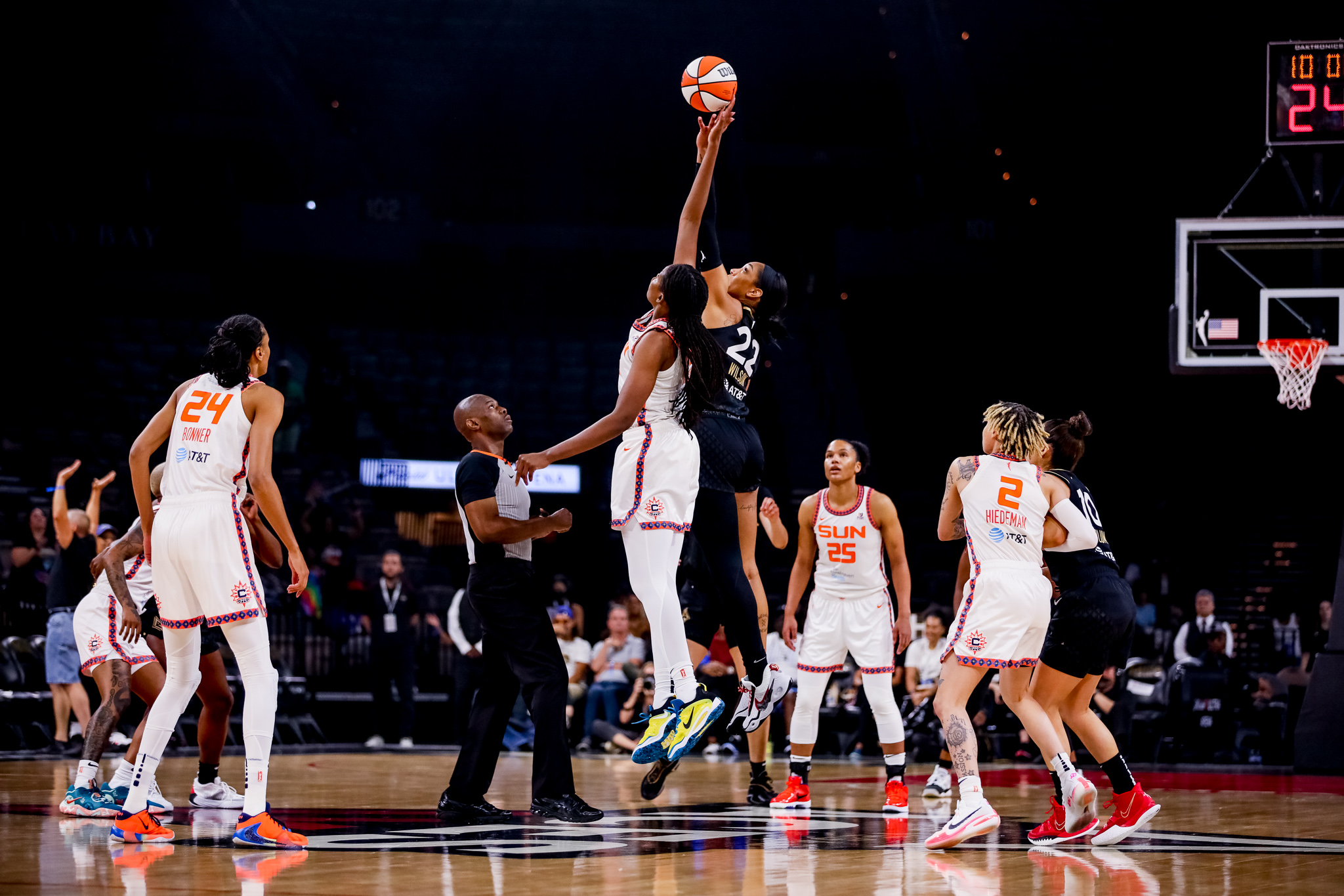 Final: Connecticut 97 Las Vegas 90. The Aces’ seven-game winning streak was snapped and it was the first home loss for Las Vegas. Wilson struggled with a 5-for-16 shooting night and 3-of-7 from the foul line. Plum was 8-for-19 from the field. “This was the most physical game I’ve played in,” Plum said after postgame.