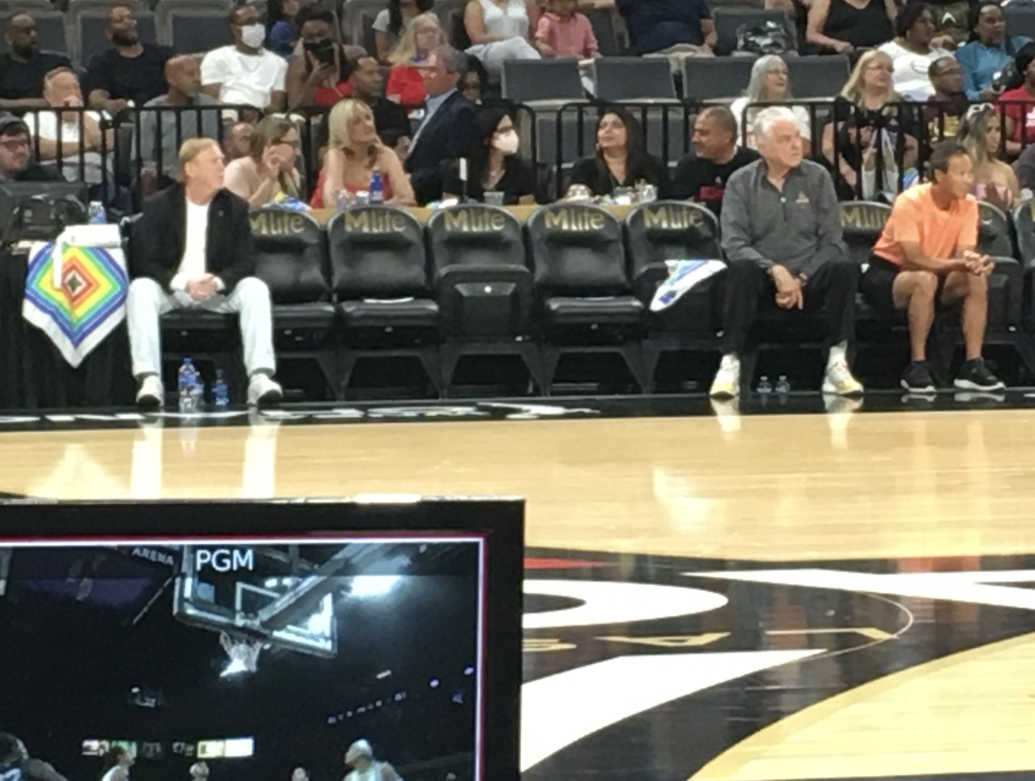 Aces owner Mark Davis and Nevada Gov. Steve Sisolak look like they’re practicing social distancing. Photo credit: LVSportsBiz.com