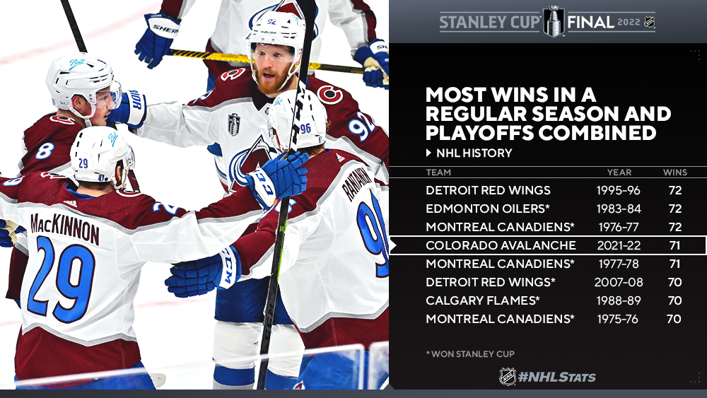 And if the Avalanche wrap up a Stanley Cup title this season, Colorado will tie the NHL record for most overall wins in a single season:
