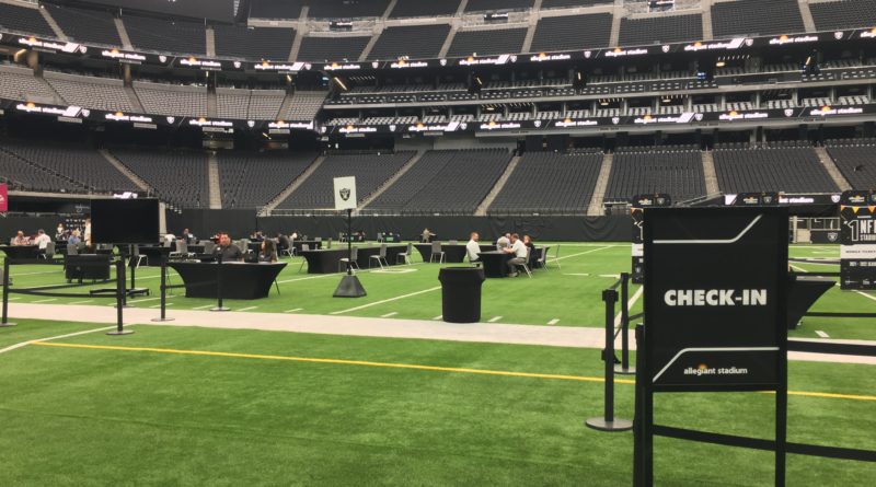 It was an easy process. Prospective workers entered the VIP entrance on the stadium’s west side, zipped down an escalator through a club and walked to the playing field to sign in and seek jobs.