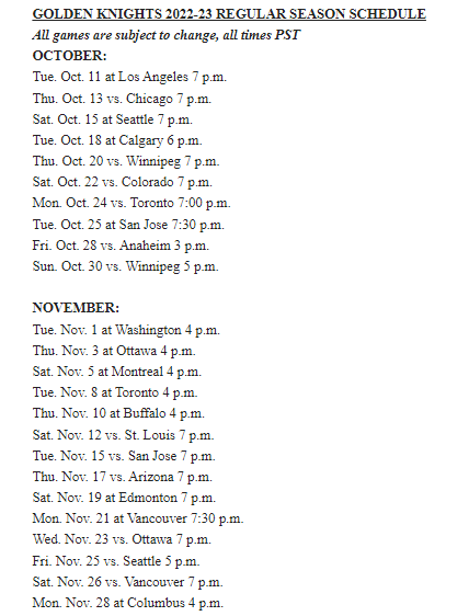 The Vegas Golden Knights schedule for 2022-23 is out.