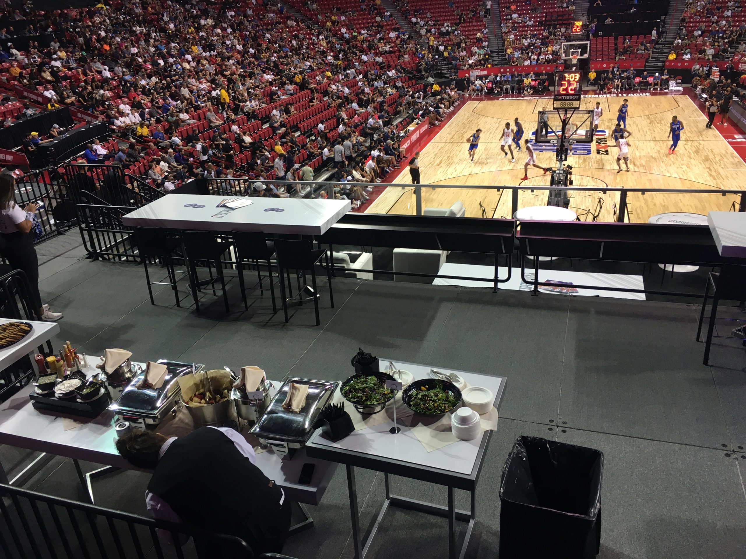 The summer league also offered a high-end NBA EXperience at $199 a ticket with all-you-can eat and drink and a comfortable lounge. That was in addition to a $99 ticket for a food-and-drink deck behind one of the goals.