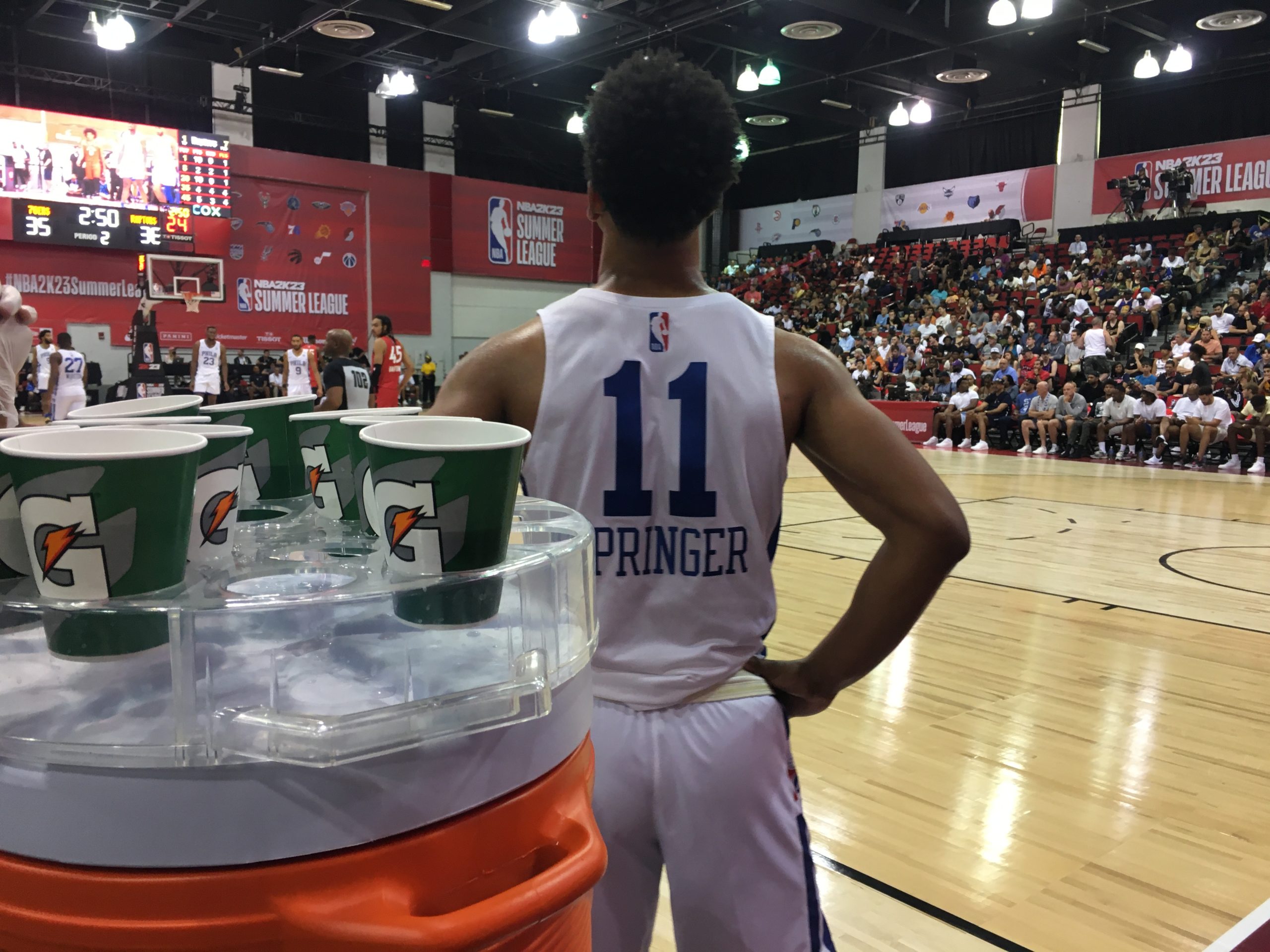 It might be a furnace outside in Las Vegas this weekend, but it’s cool inside the summer league venues, which are connected through an open walk area that includes concessions and vendor tables.