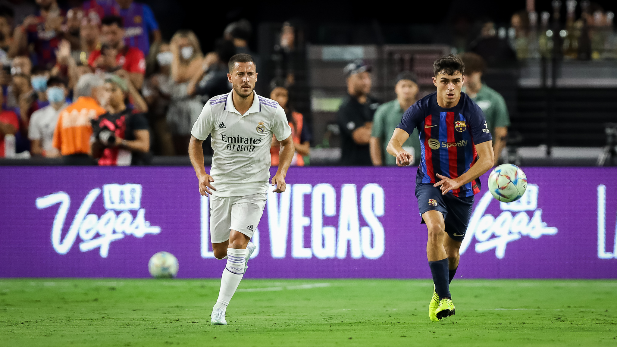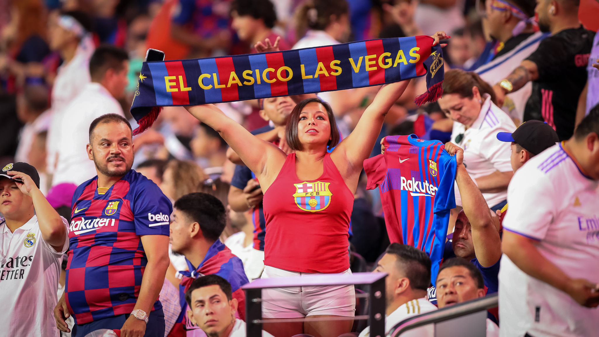 A massive crowd of 61,299 packed Allegiant Stadium for a monster international soccer game between world futbol powers Real Madrid and FC Barcelona Saturday night in Las Vegas.