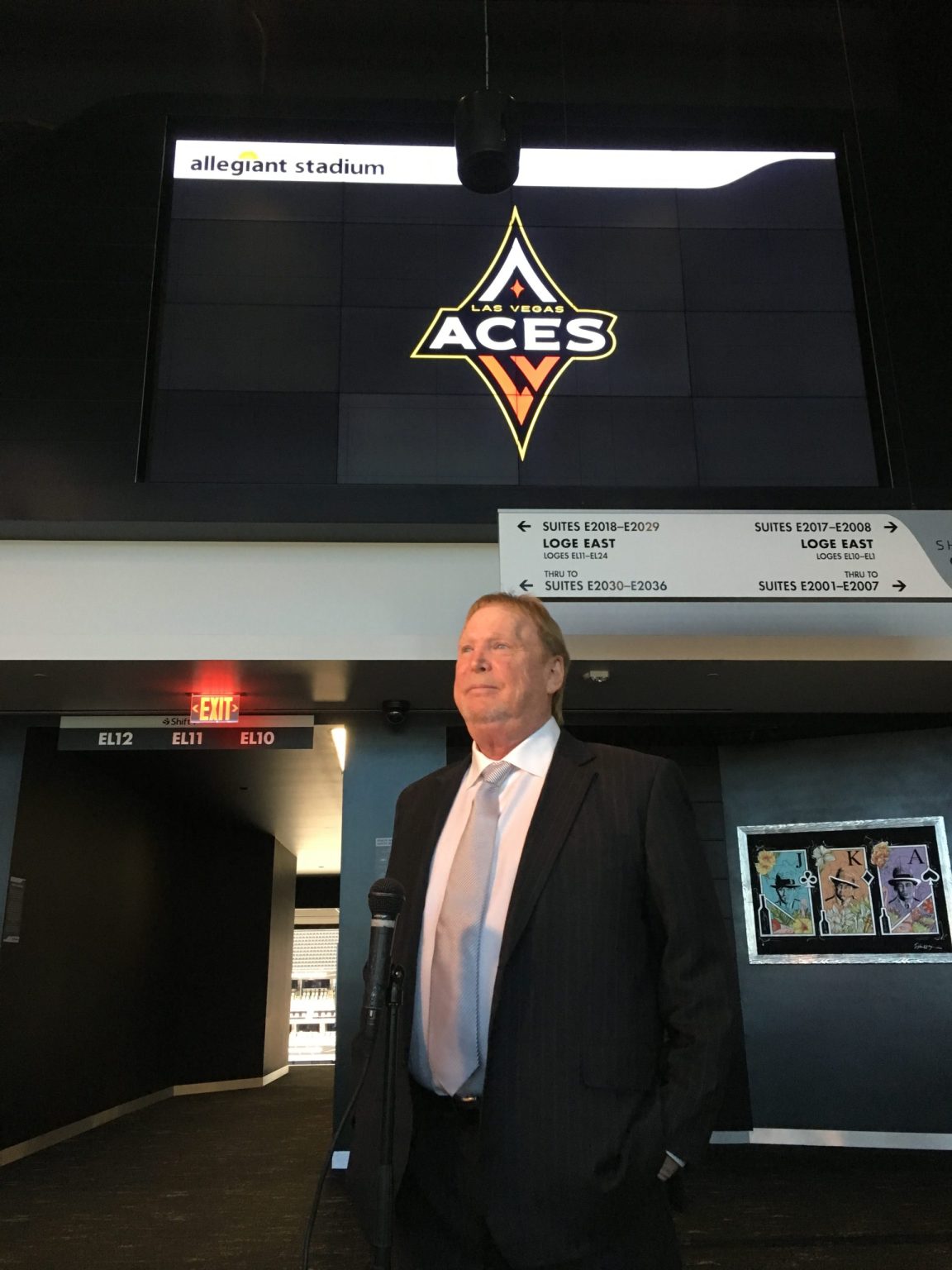 Davis has also used the domed NFL stadium for other Aces events, like when he introduced Nikki Fargas the Aces team president in May 2021. Here’s a pic of Davis at that occasion: