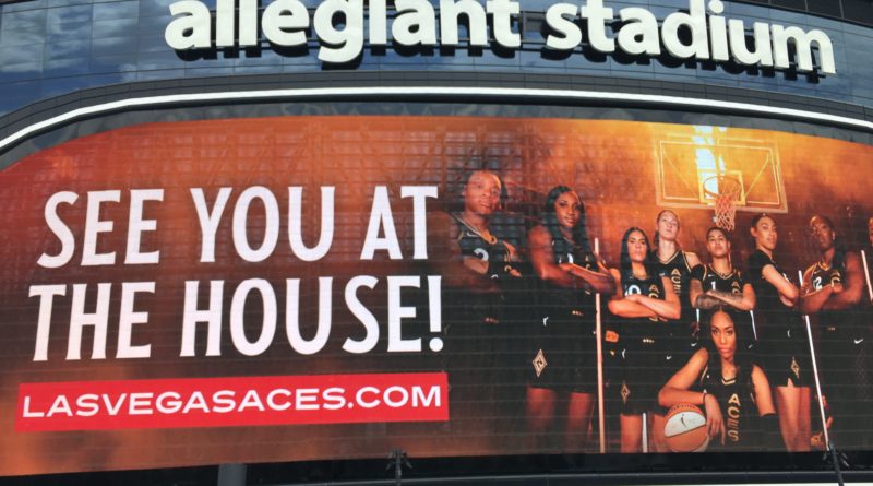 Namely, Allegiant Stadium, which has a giant exterior screen on its east side promoting upcoming stadium acts, sponsors and the Aces.