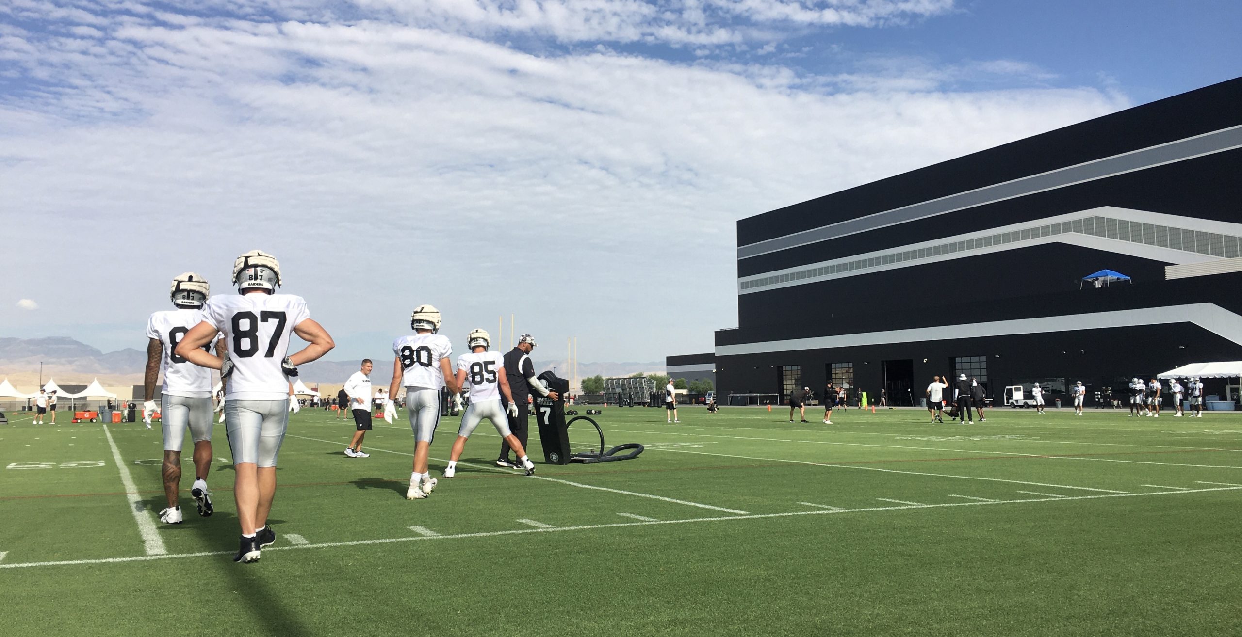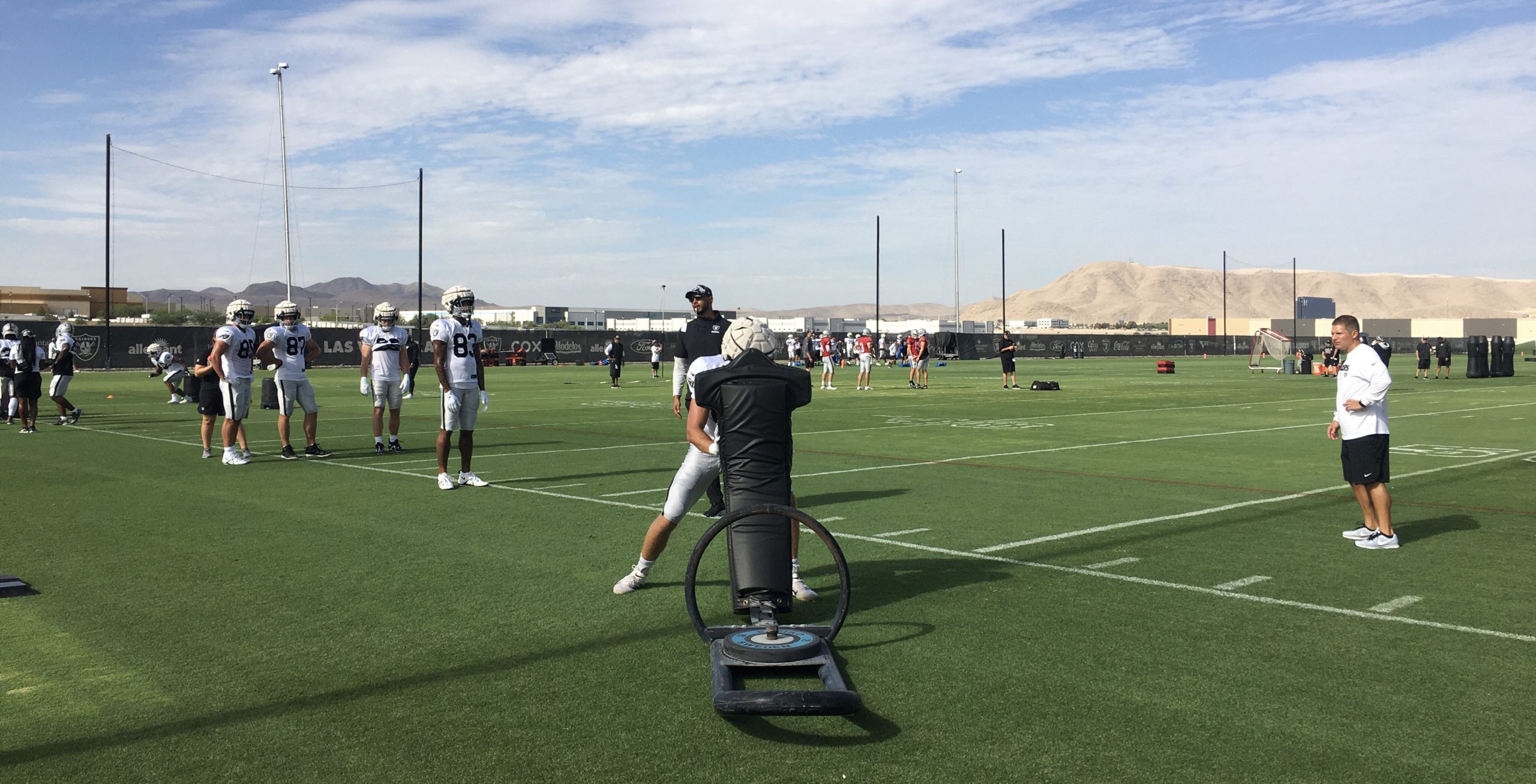 There were lots of media members lining the side of the grass field, one of three practice fields next to the Las Vegas Raiders’ HQ here in south Henderson about four miles east of Las Vegas Boulevard and Interstate 15. At 8:35AM, the media was given 30 minutes to take photos and videos. Those are the rules by first-year Raiders coach Josh McDaniels, who comes from the New England Patriots way of life.