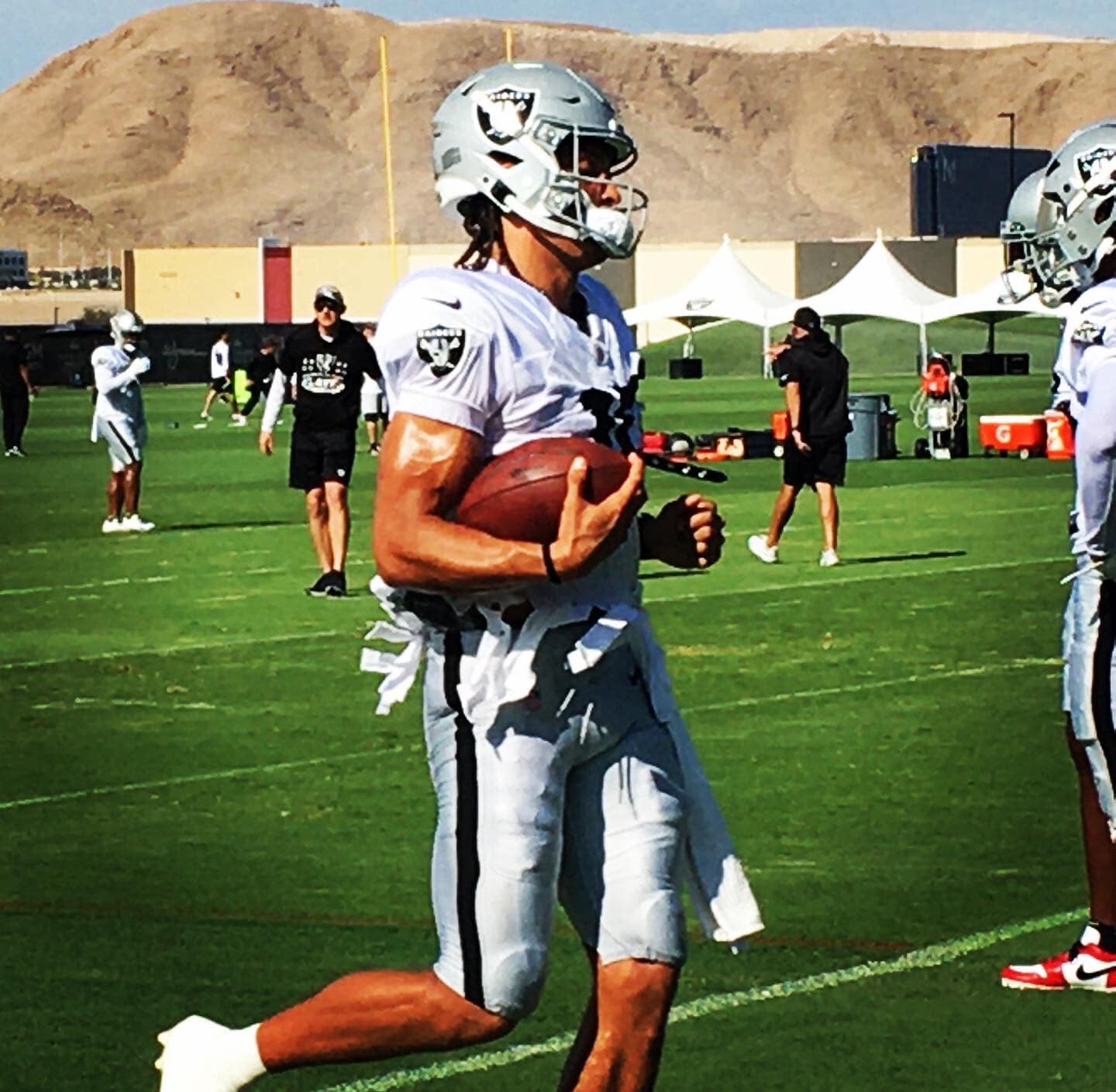 At the Raiders practices, I’m still trying to get used to the 30-minute rule that the Raiders enforce to allow the media to take photos and video for only a half-hour after they’re allowed into the practice fields area. As an old city hall reporter, this rule is foreign turf to me and I mistakenly snap a photo after the deadline. I’m told no pictures.