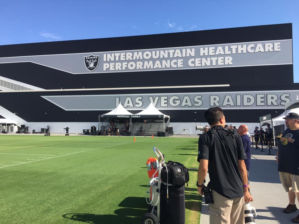 The Raiders’ naming rights deal with Salt Lake City, Utah-based-based Intermountain Healthcare is clear as a Henderson day on the writing on the Raiders HQ’s exterior wall facing the three practice fields.