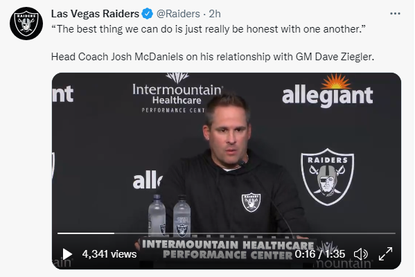 Raiders coach Josh McDaniels had already chatted with media and he offered this thought about working with former college and ex-Patriots buddy, Ziegler.