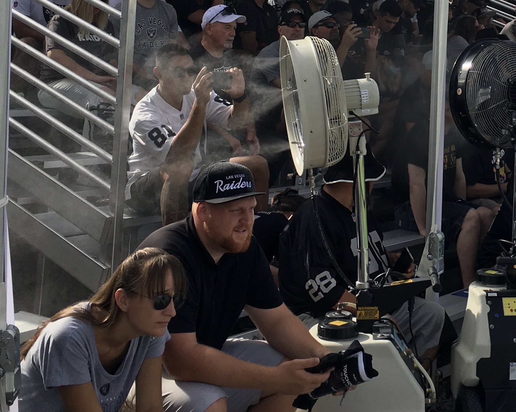 The humidity was high by Las Vegas standards, but that didn’t stop the Raiders fans wearing licensed logo gear from filling in the bleachers for a morning practice Sunday.