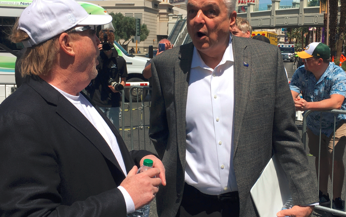 Raiders/Aces owner Mark Davis and Nevada Gov. Steve Sisolak at the recent NFL Draft in Las Vegas in late April. Photo credit: J. Tyge O'Donnell/LVSportsBiz.com