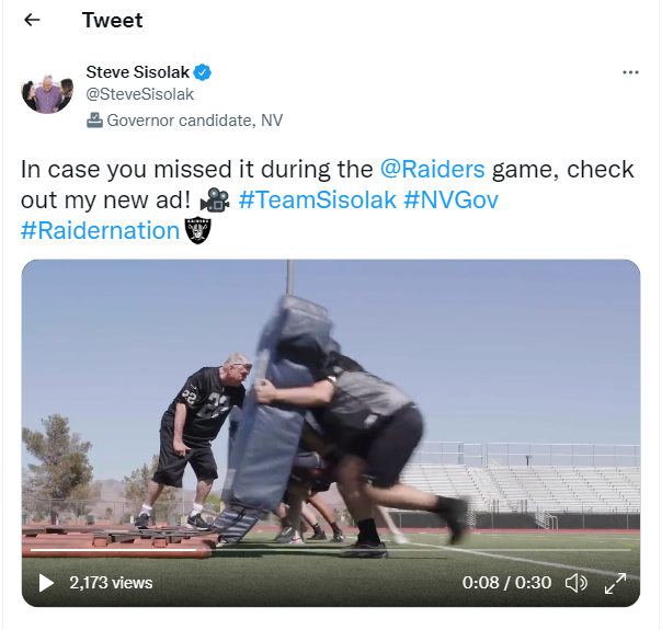 Sisolak touted his love for sports again in Tuesday’s new gubernatorial re-election TV spot, claiming sports have pumped billions of dollars into the economy.