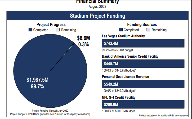The Raiders also hit the jackpot with a stunning $549.2 million in personal seat licenses (PSL) that were collected from season ticket holders.