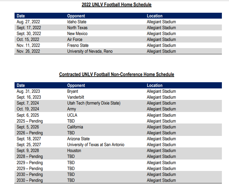 Not only do the Raiders play at Allegiant Stadium, UNLV’s football team plays there, too. The first of six home games in 2022 is set for Aug. 27. Take a look at its schedule.