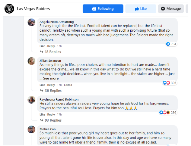 The Raiders organization dealt with this city’s most high-profile road fatality when Ruggs killed an innocent woman in a car in early November and left a family and friends to grieve over a painful loss. A social media reminder of the raw emotions at the time when Tintor was killed: