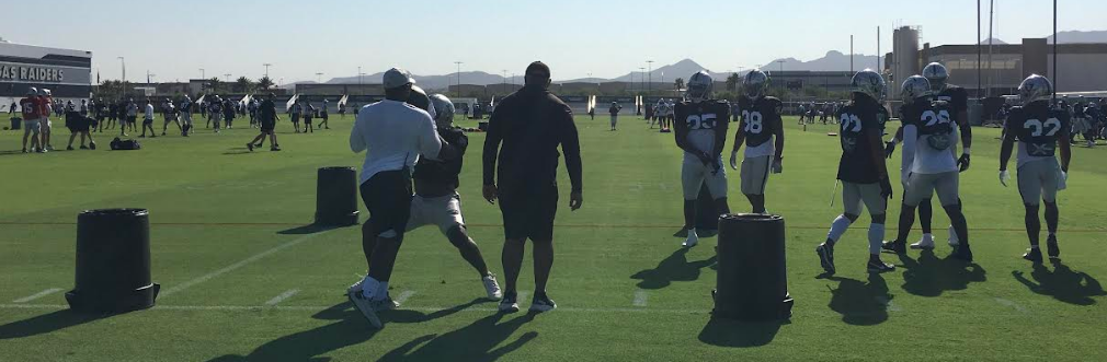 The media has 30 minutes to take video and photos. Today’s video/photo session ended at 9:19AM. Unfortunately, the video/photo window did not include any practices where the Raiders and Patriots were practicing together. The two teams engaged in activities like line of scrimmage practices where linemen from both teams collided into each other and receivers were covered by defensive backs on pass plays. But those happened after the 30-minute window.