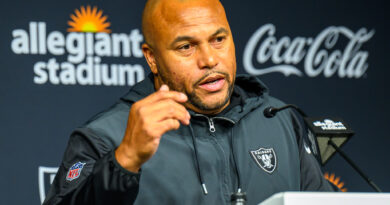 The Rebels football team will have the UNLV arch at midfield and the Mountain West logos painted on the natural grass surface. The only difference is the end zones will still say “LAS VEGAS” and “RAIDERS.”