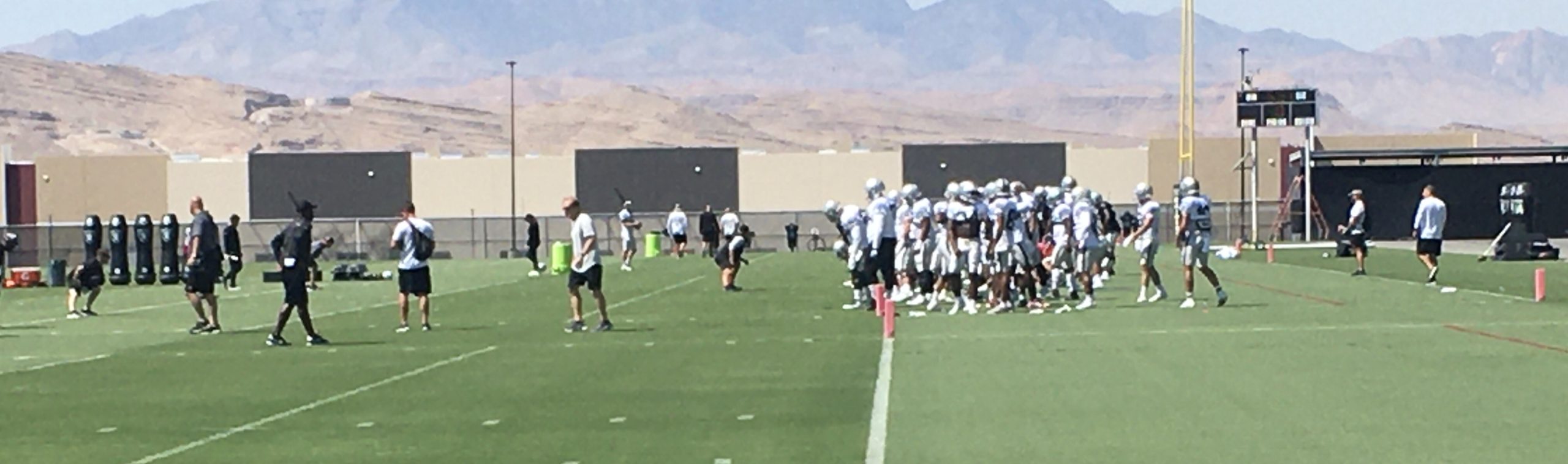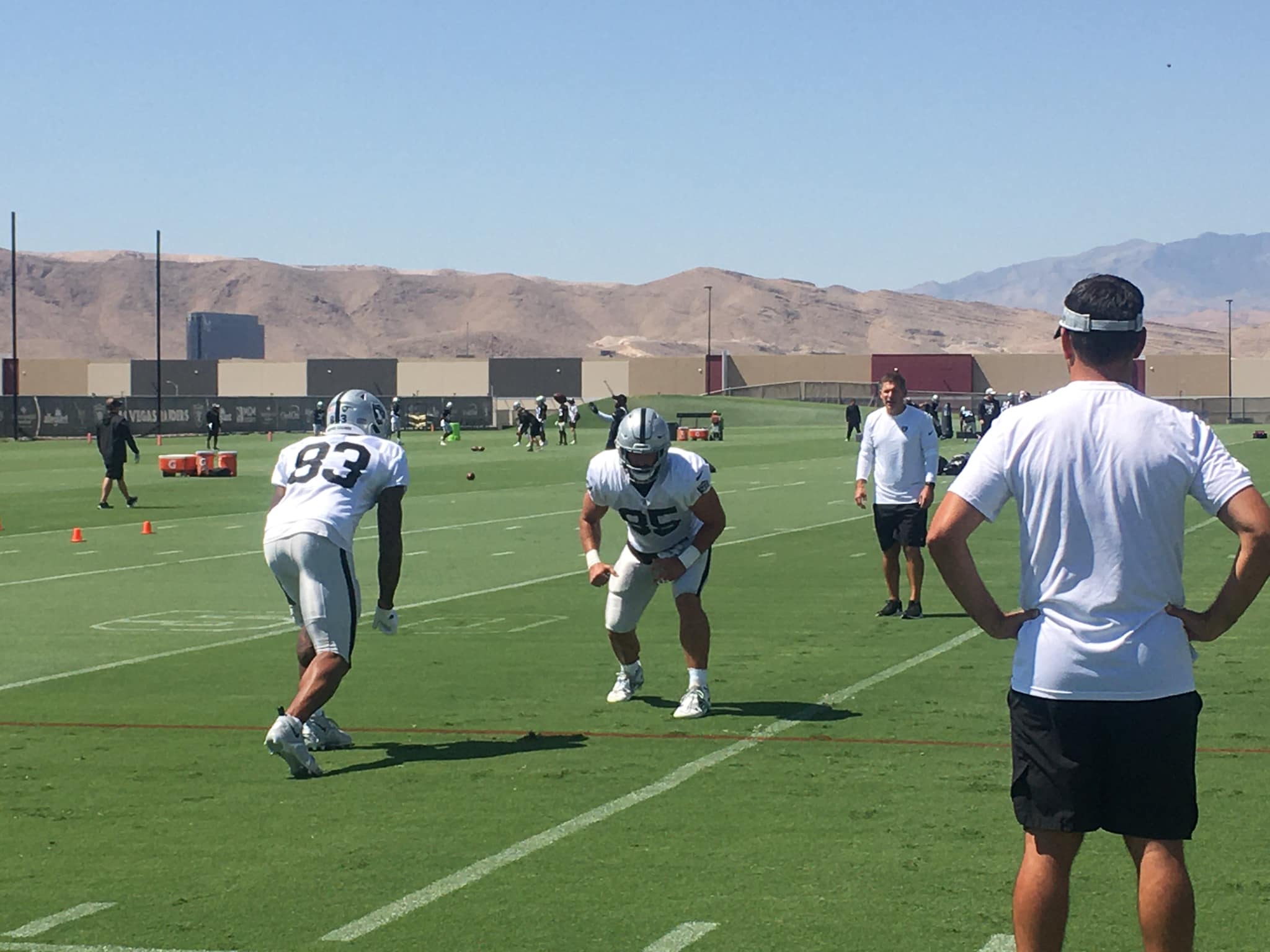 The furnace-like heat courtesy of the Las Vegas heat wave didn’t stop General Manager Dave Ziegler, marking his 44th birthday today, from strolling over to the tight ends and greeting the players like Darren Waller.