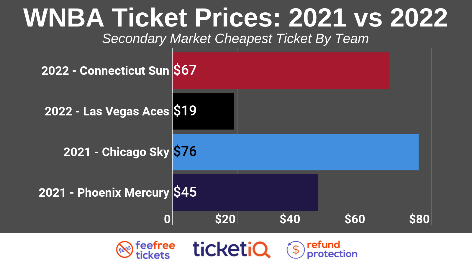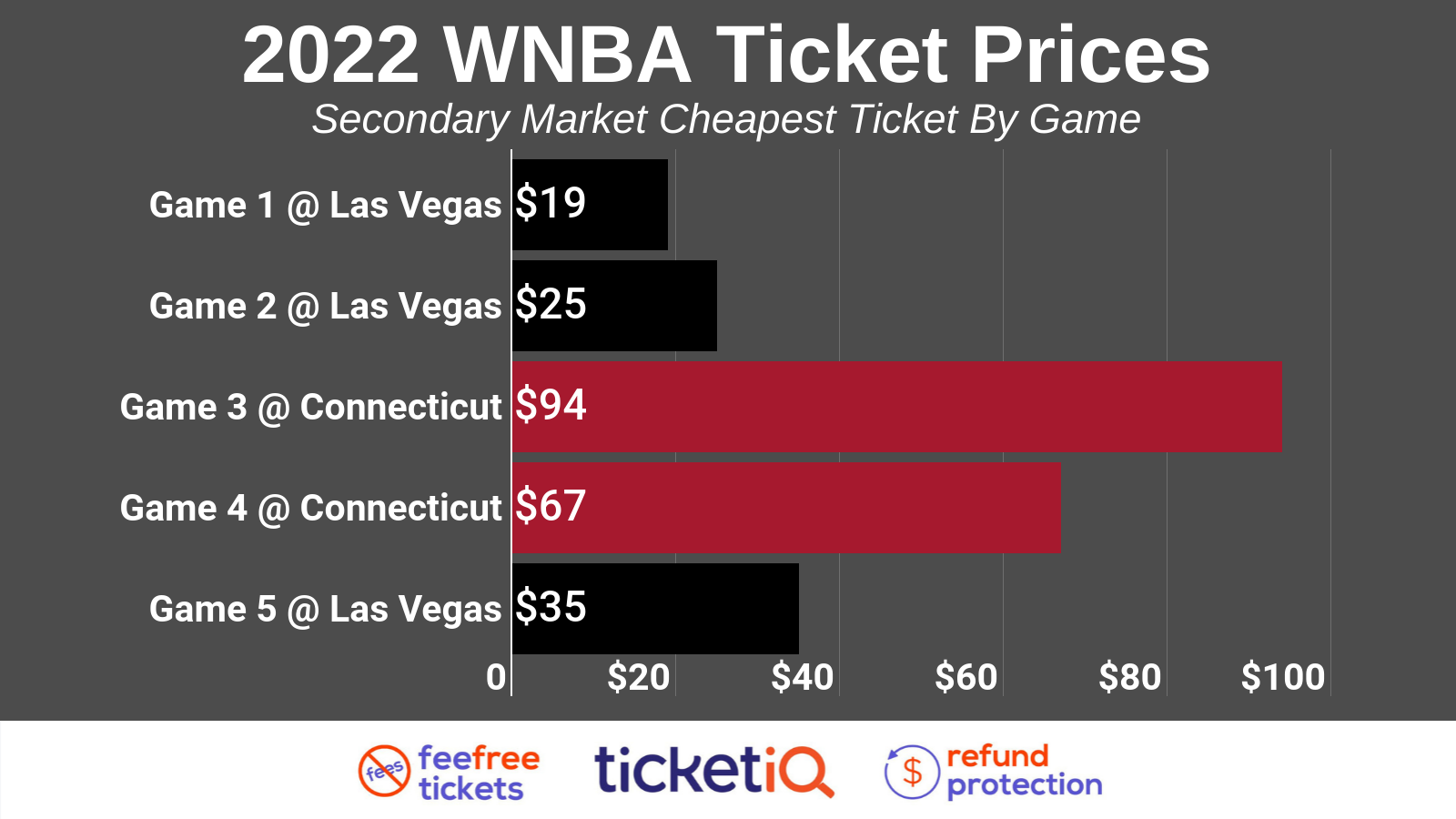 In terms of cheapest tickets, the Connecticut Sun game prices are significantly more expensive than Las Vegas’ game tickets.