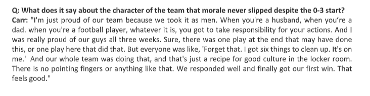 Josh McDaniels on his first coaching win as the Raiders head coach: “Better to talk after a victory than after a defeat.”