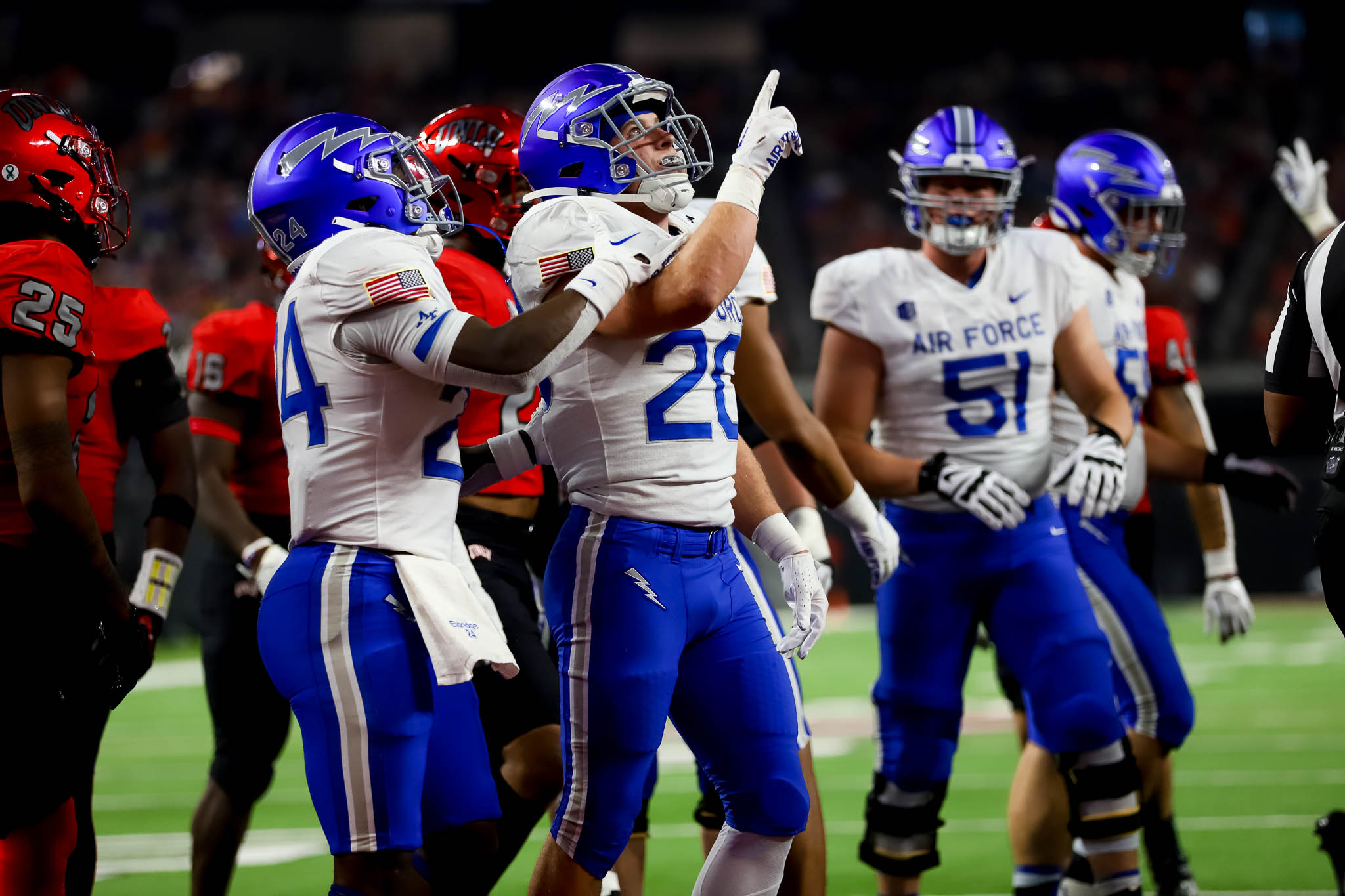 Brumfield’s backup, Cameron Friel, fumbled twice in the first half tonight and another UNLV fumble on a kickoff return added up for some easy Air Force scores.