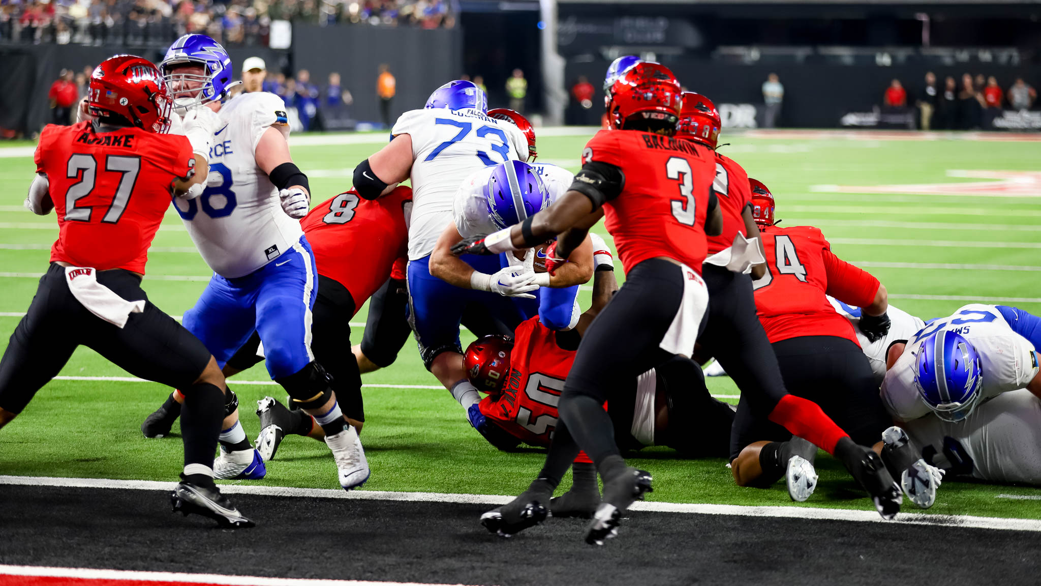 By the end of the third quarter, Air Force had outgained UNLV, 349-160. The run-based Air Force attack churned out 335 yards rushing of that 349.
