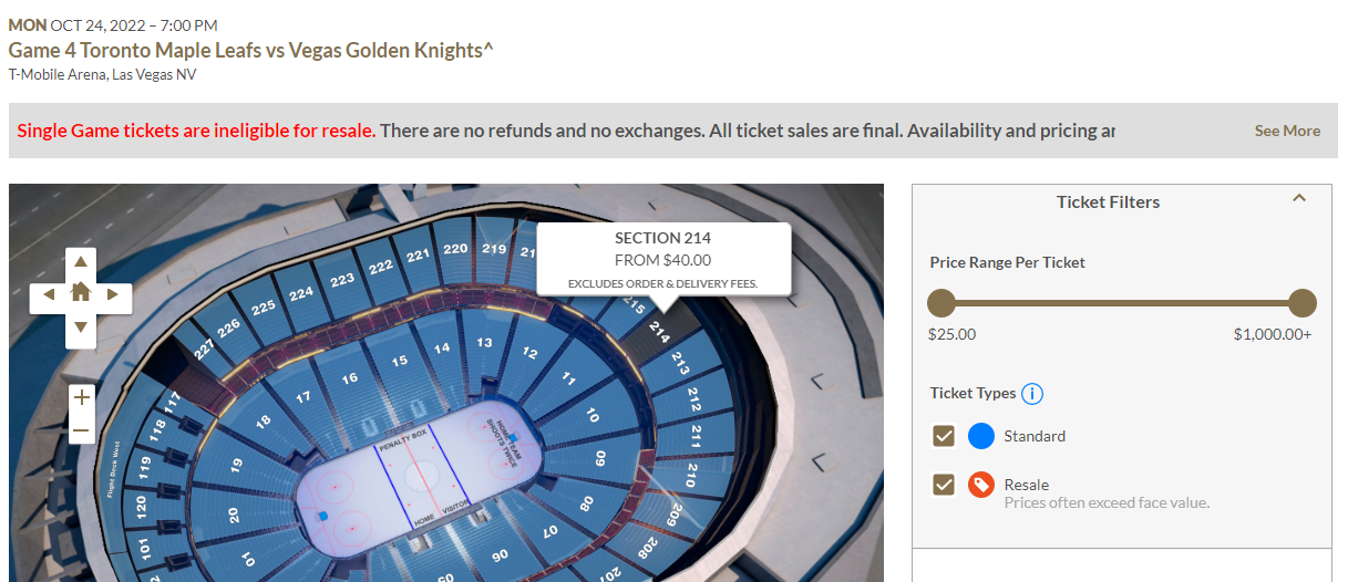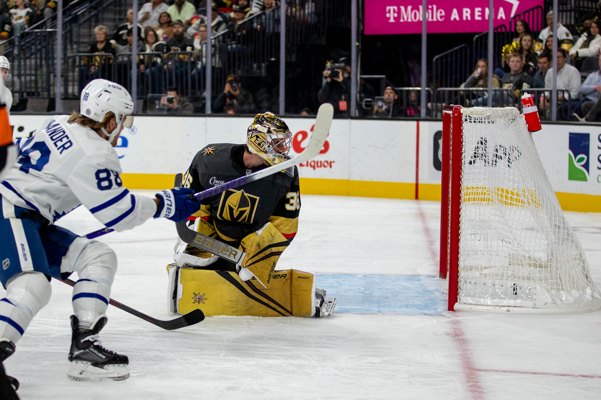 The Toronto fans have been known to travel well to follow their Leafs in games in Las Vegas. And there was an impressive showing of blue-and-white jerseys in the T-Mobile Arena stands tonight.