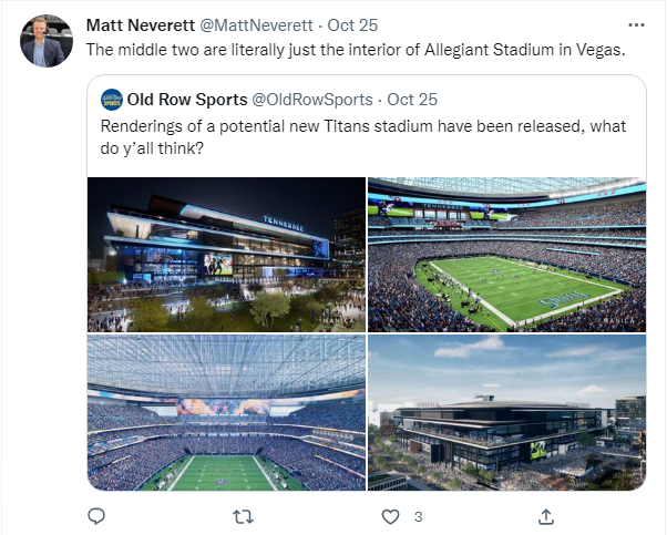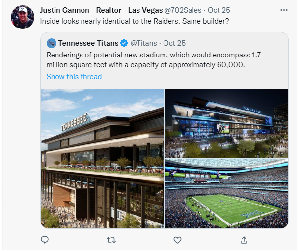 Some people here in Las Vegas commented that even the football stadium interiors of the proposed Titans stadium and the Raiders stadium are very similar too: