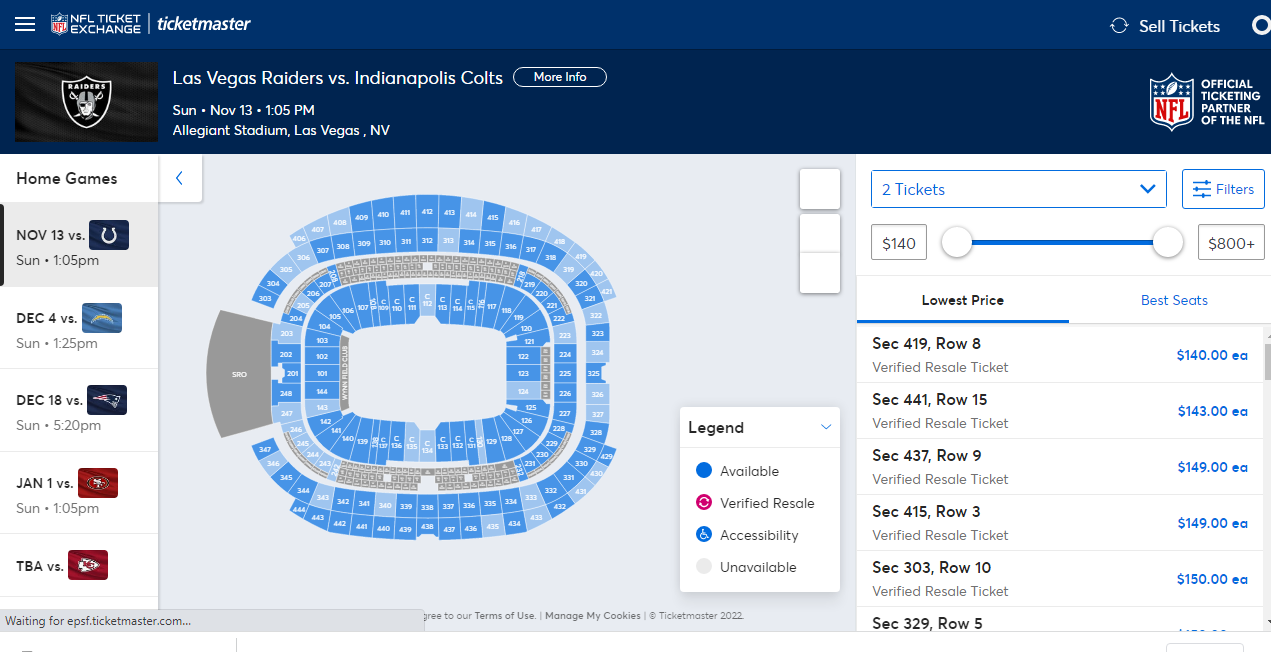 The average ticket price for a Raiders home game at Allegiant Stadium is $153.47, the most expensive in the National Football League. Plus, the Raiders’ family-of-four costs to attend a game at the domed stadium is also the most expensive in the 32-team NFL.