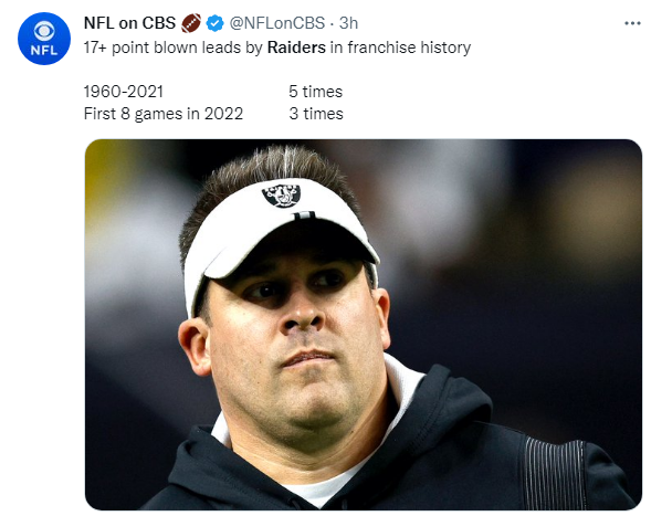 There were not shortage of Twitter posts about the Raiders’ blown lead and the fact it’s happened two other times already during the Raiders’ first eight games:
