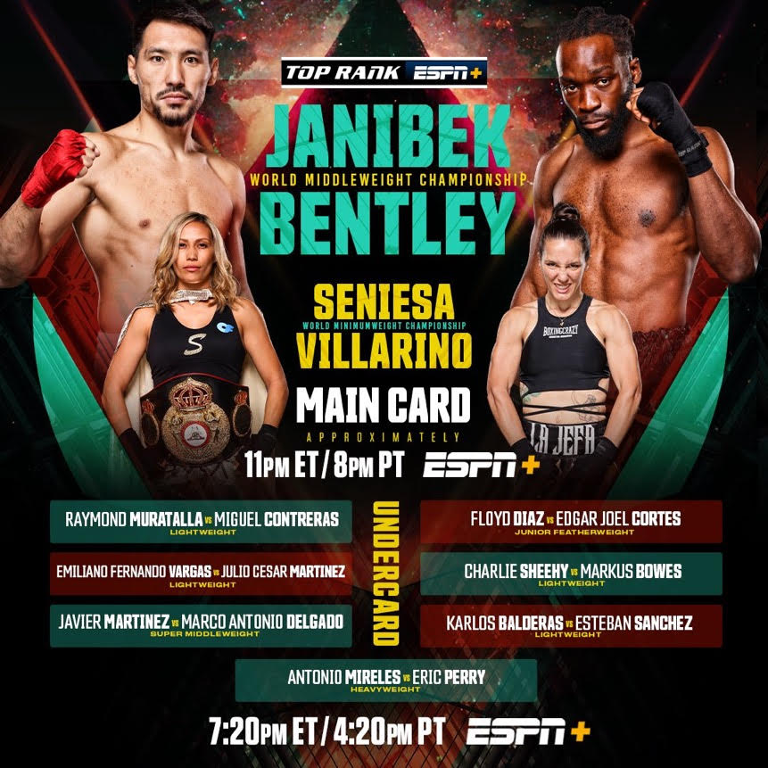 The 2,500-person capacity Pearl Theater will feature a 12-round middleweight championship main event, featuring Janibek “Qazaq Style” Alimkhanuly (12-0, 8 KOs). The 2016 Olympian will defend his title against British middleweight champion Denzel Bentley (17-1-1, 14 KOs) in the championship double header.