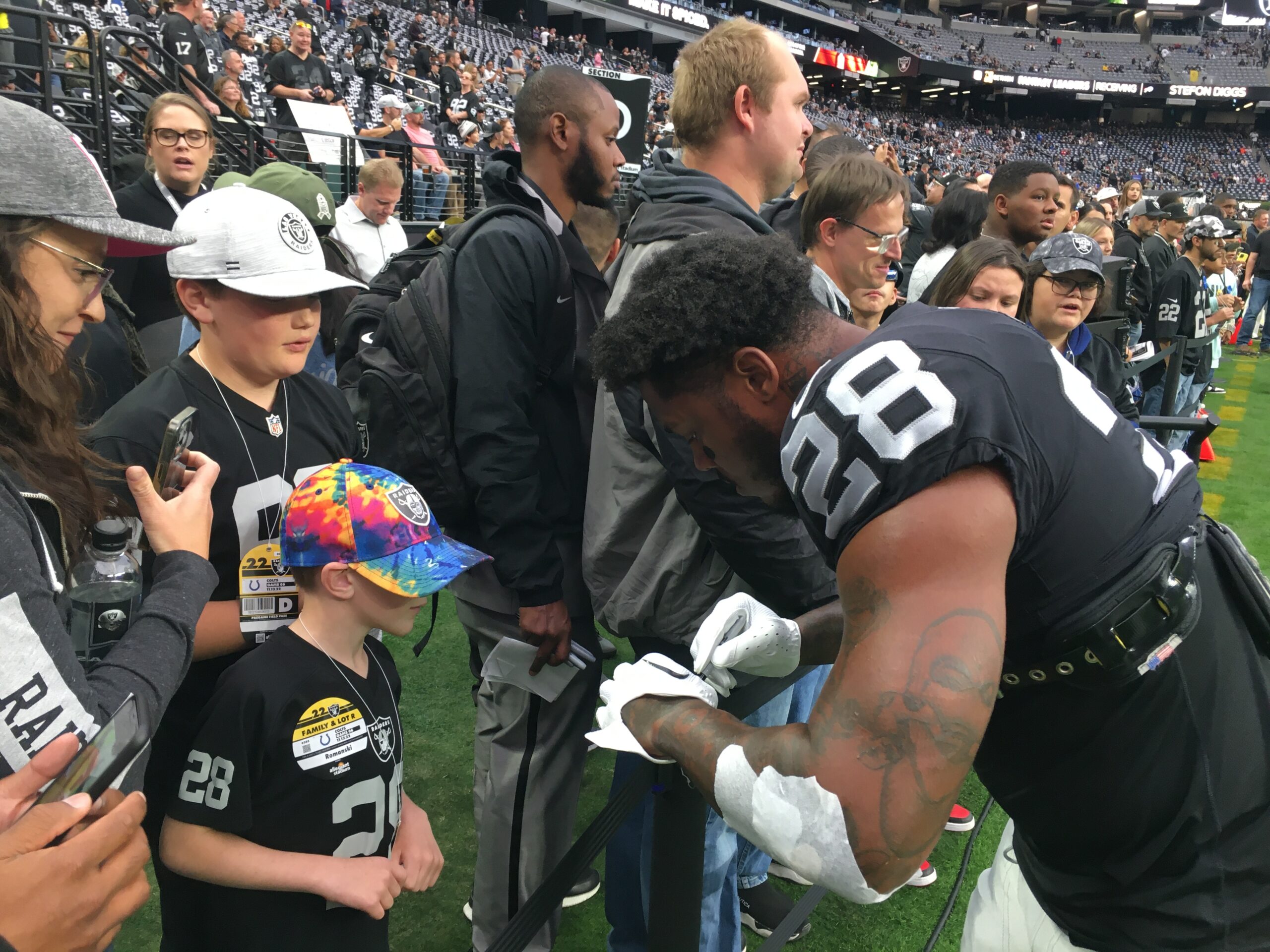 The Raiders received the ball and began moving. Quarterback Derek Carr completed only his econd pass of the game and Josh Jacobs began churning out the yards.
