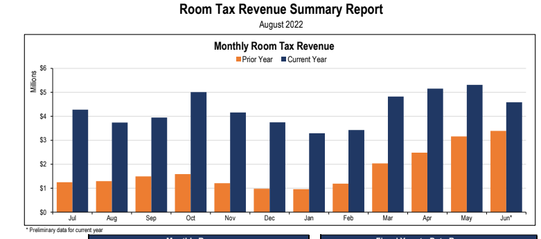 Here’s a look at the latest hotel room tax revenue numbers: