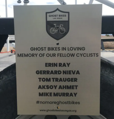 A memorial ghost bike with five seats was installed on the 215 trail on the north side of the Charleston Boulevard crossing in Summerlin.