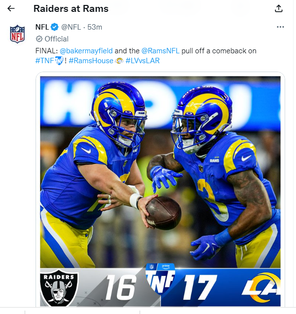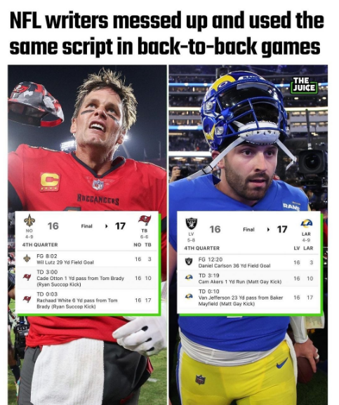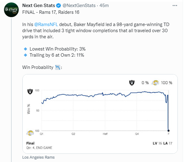 And then the Raiders one-upped the VGK tonight by blowing a 16-3 lead in the last three and a half minutes in Los Angeles and painfully watched a quarterback who showed up at the Rams doorstep two days ago lead the defending Super Bowl champs to an improbable 17-16 win over Las Vegas.