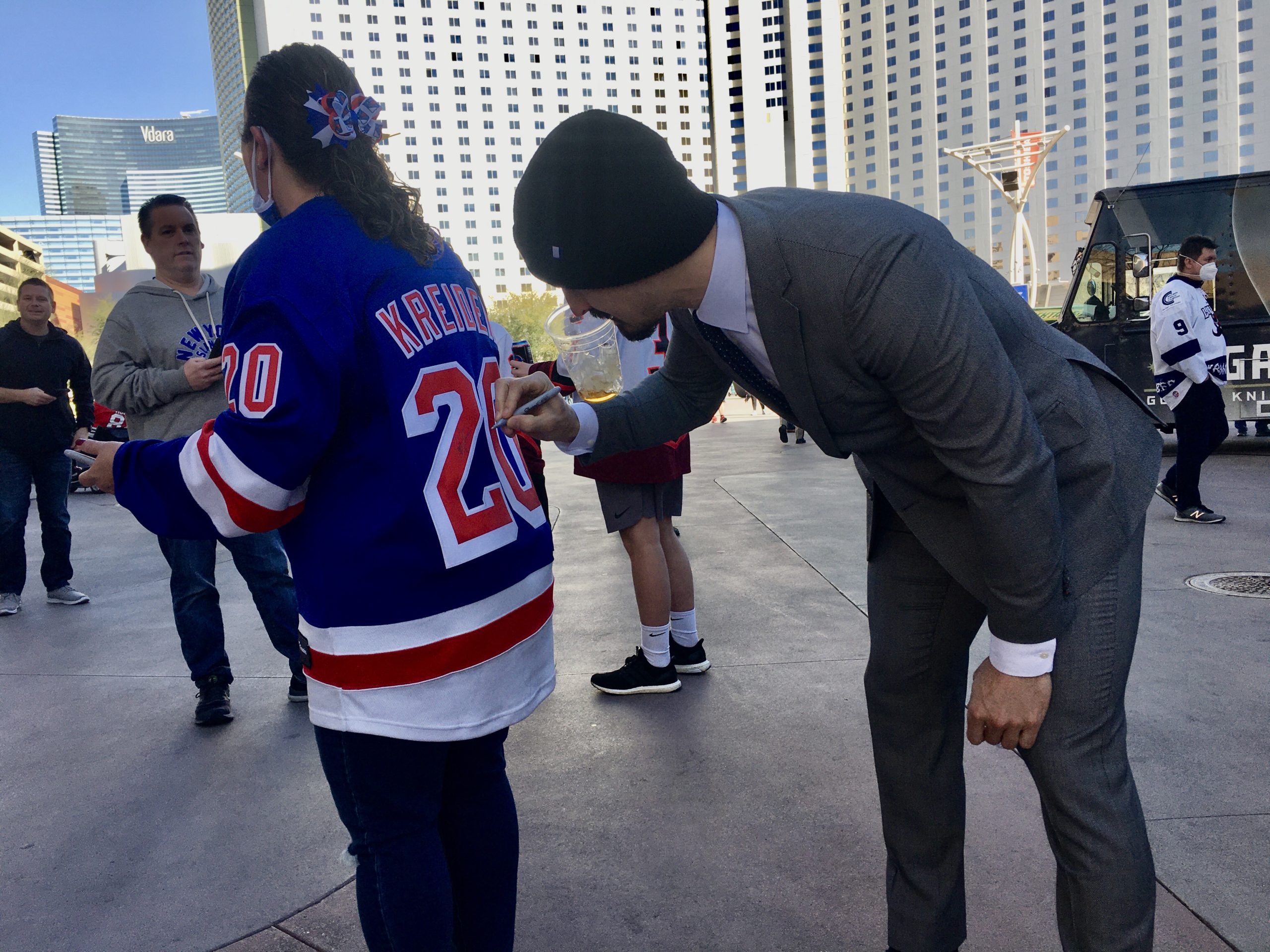 Fan has her hand signed by Mark Davis