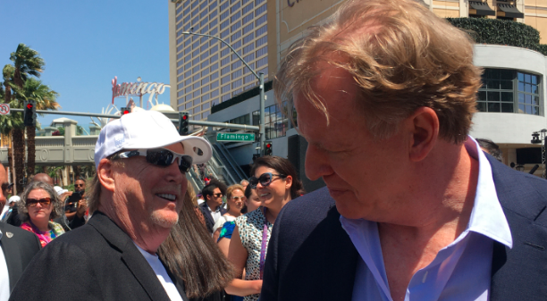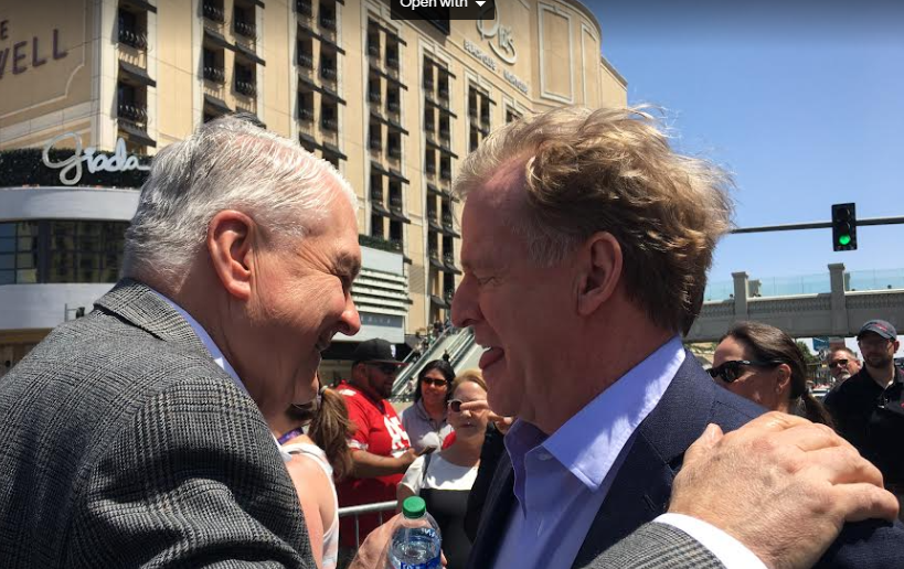 Raiders/Aces owner Mark Davis and Nevada Gov. Steve Sisolak at the recent NFL Draft in Las Vegas in late April. Photo credit: J. Tyge O’Donnell/LVSportsBiz.com