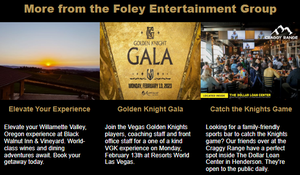 The Golden Knights, which are owned by Foley, offer other cross-promotional deals because Foley also owns wineries in California and Oregon. The Knights contacted their fans to let them know about these deals.