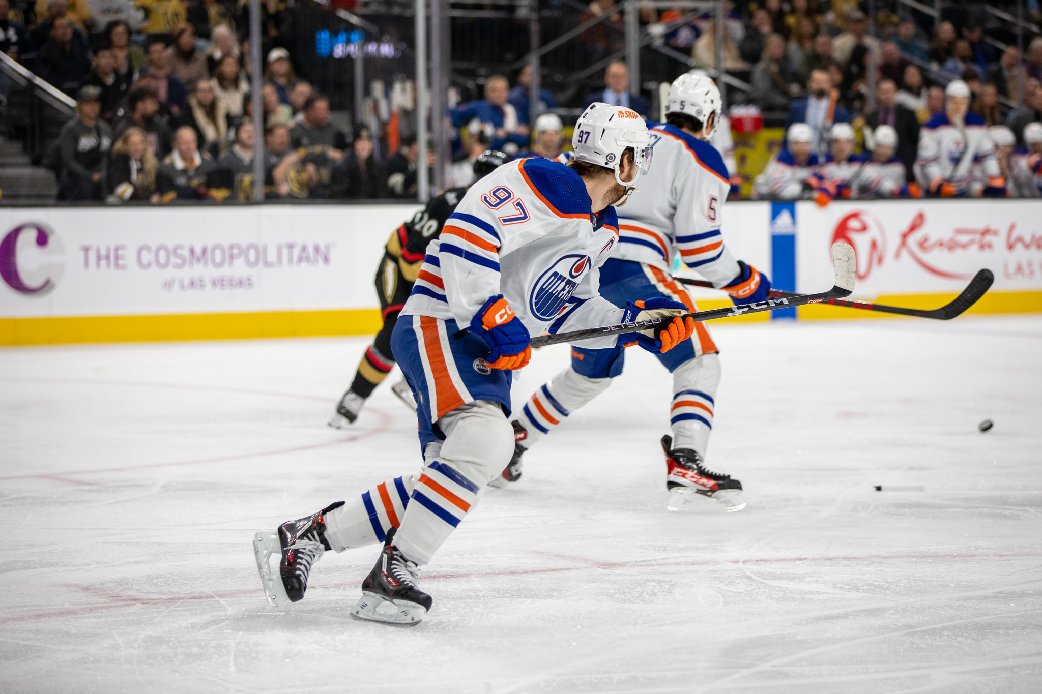 The Edmonton Oilers scored twice before many fans reached their seats with beers at T-Mobile Arena and Edmonton followed up the quick 2-0 start with a 4-3 win over the Vegas Golden Knights Saturday night on the Strip.