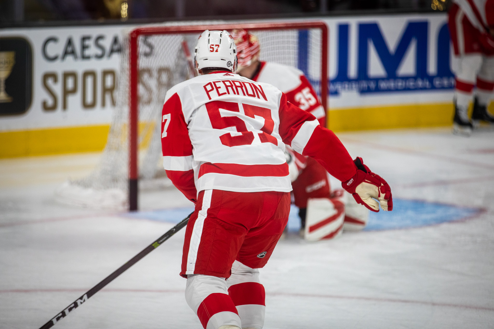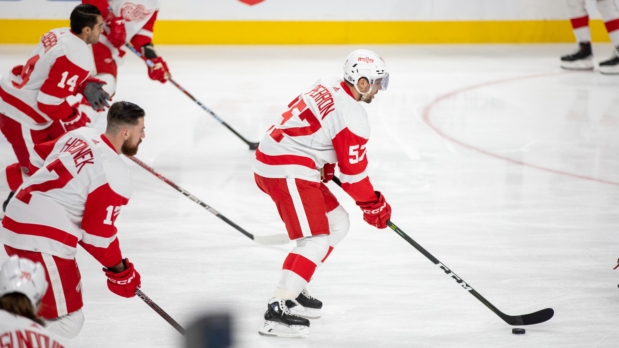 Less than three minutes into the game, Detroit’s Lucas Raymond tapped in an easy goal for a 1-0 lead.