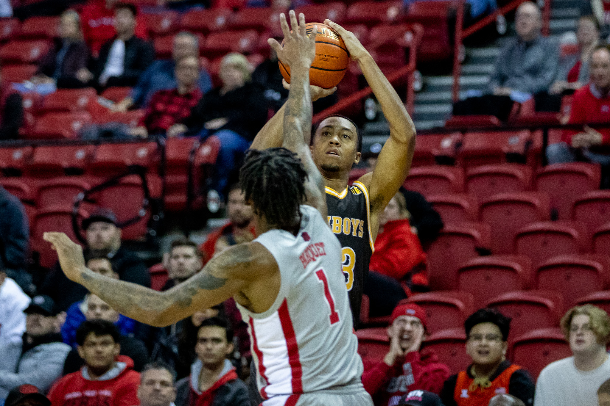 And UNLV responded with a 41-31 lead at halftime, shooting 55 percent from the field in the first 20 minutes. And then UNLV’s EJ Harkless led the Rebs in the second half for a 86-72 win for the home team in Thomas & Mack Center. UNLV improved to 13-7 and 2-6 in the MWC, while Wyoming slumped to 6-14, and 1-7 in the Mountain West. Harkless led the Rebs with 28 points. UNLV announced attendance at 4,539.