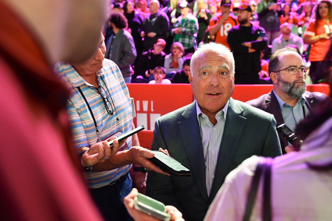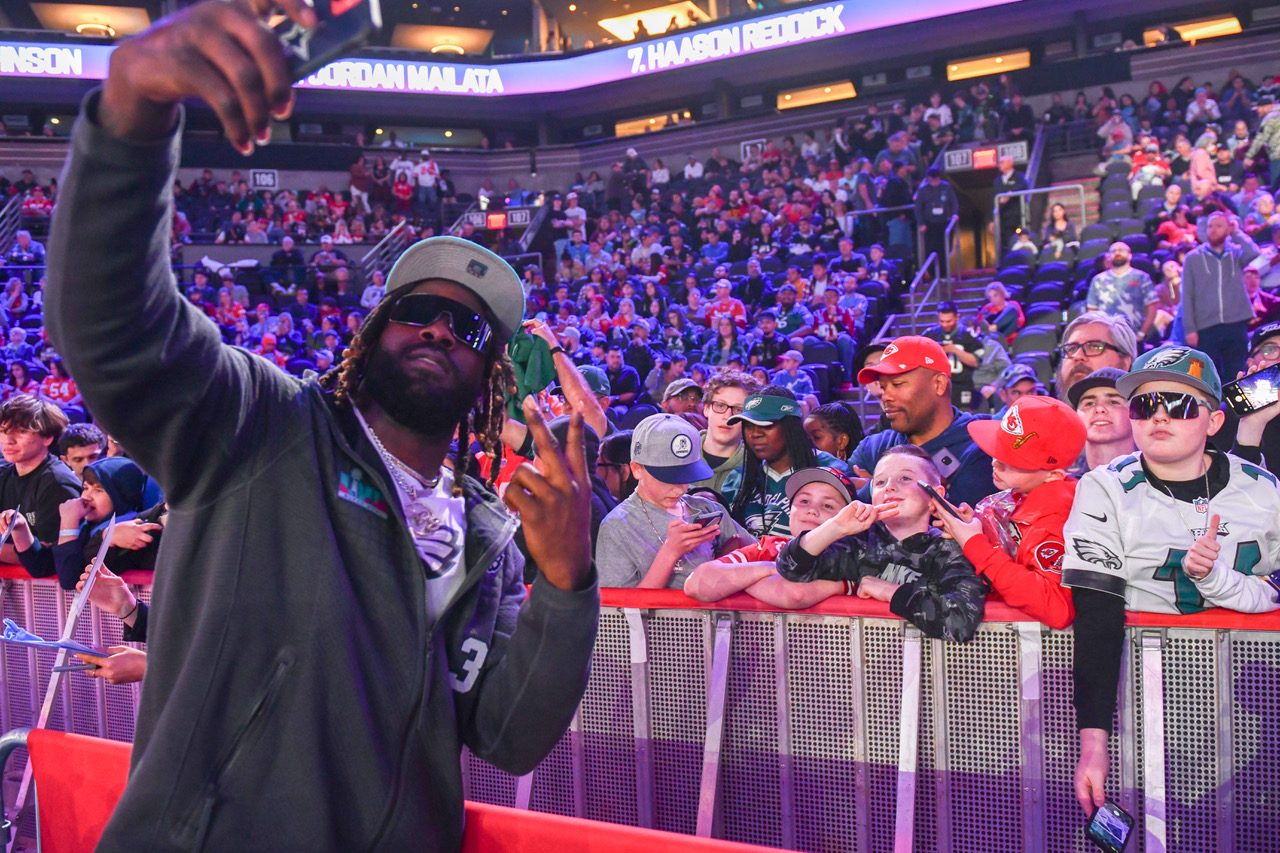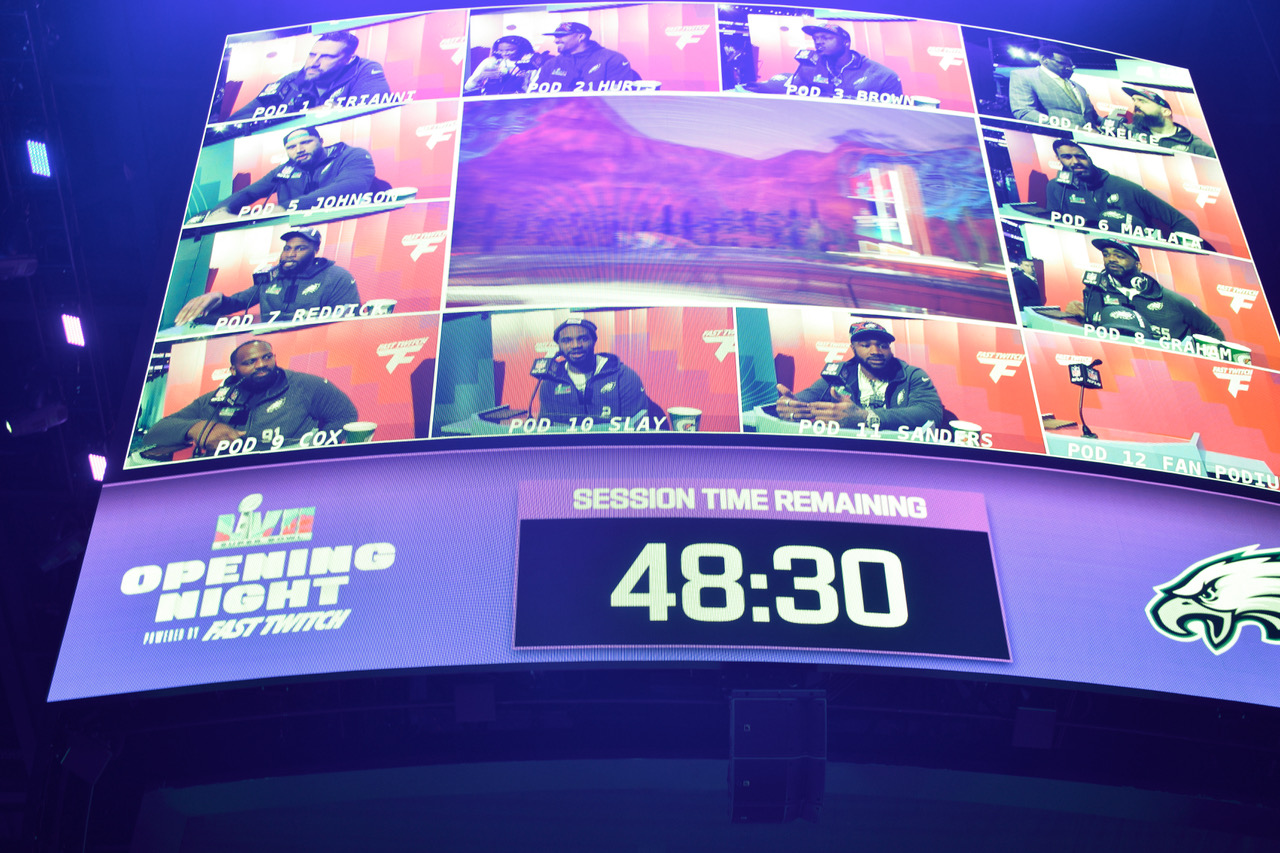 The teams’ starting quarterbacks — the Eagles’ Jalen Hurts and the Chiefs’ Patrick Mahomes — entertained questions from NFL Network/ex-player Michael Irvin.