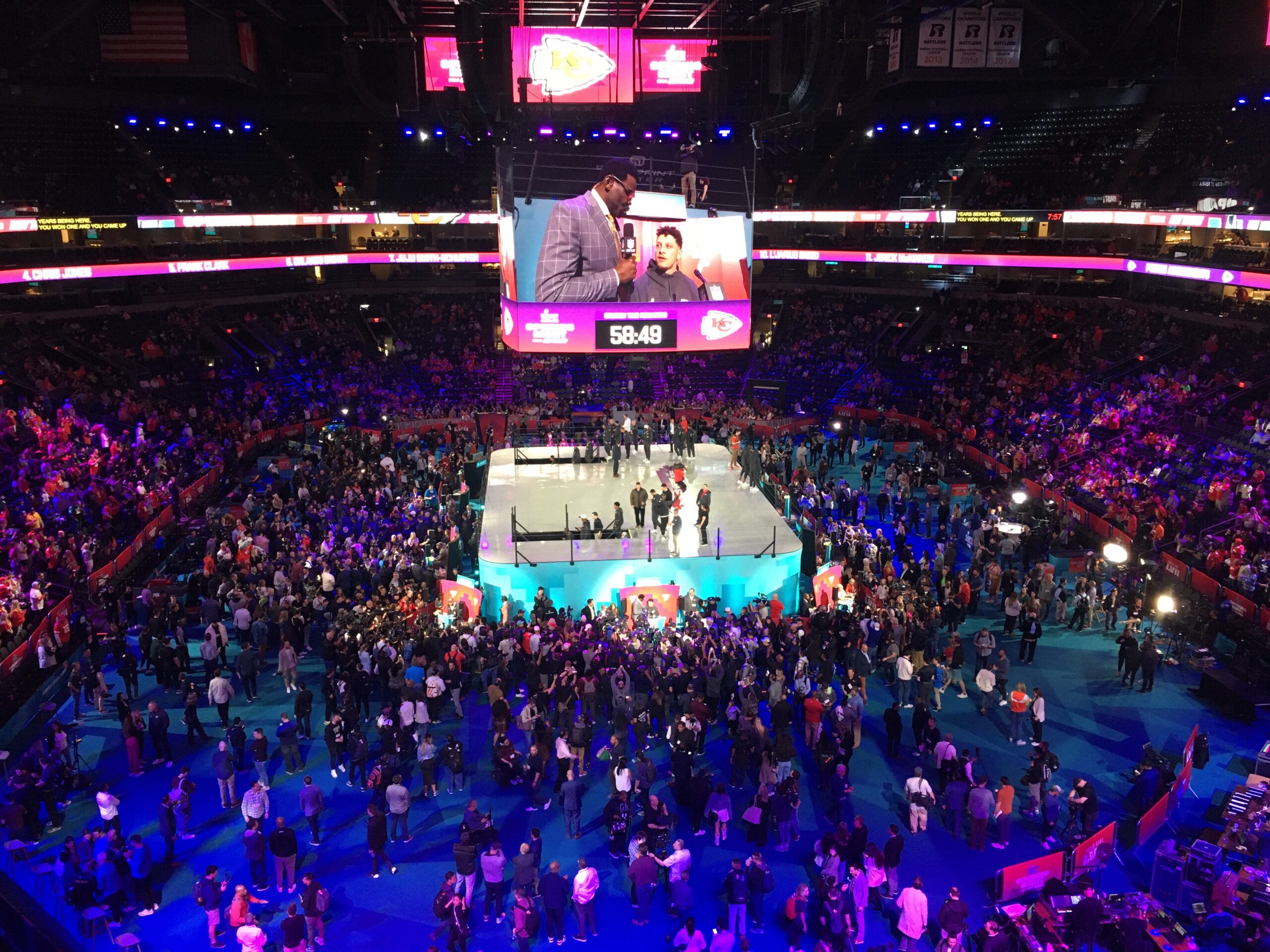 PHOENIX, Arizona — They’ve created an entertainment spectacle that transcends sports, throwing star football athletes, loud music and fans dropping 20 bucks a head into a adrenalin-juiced blender and creating a Super Bowl opening night event that jolted the big game vibe into motion at the Phoenix Suns arena Monday.