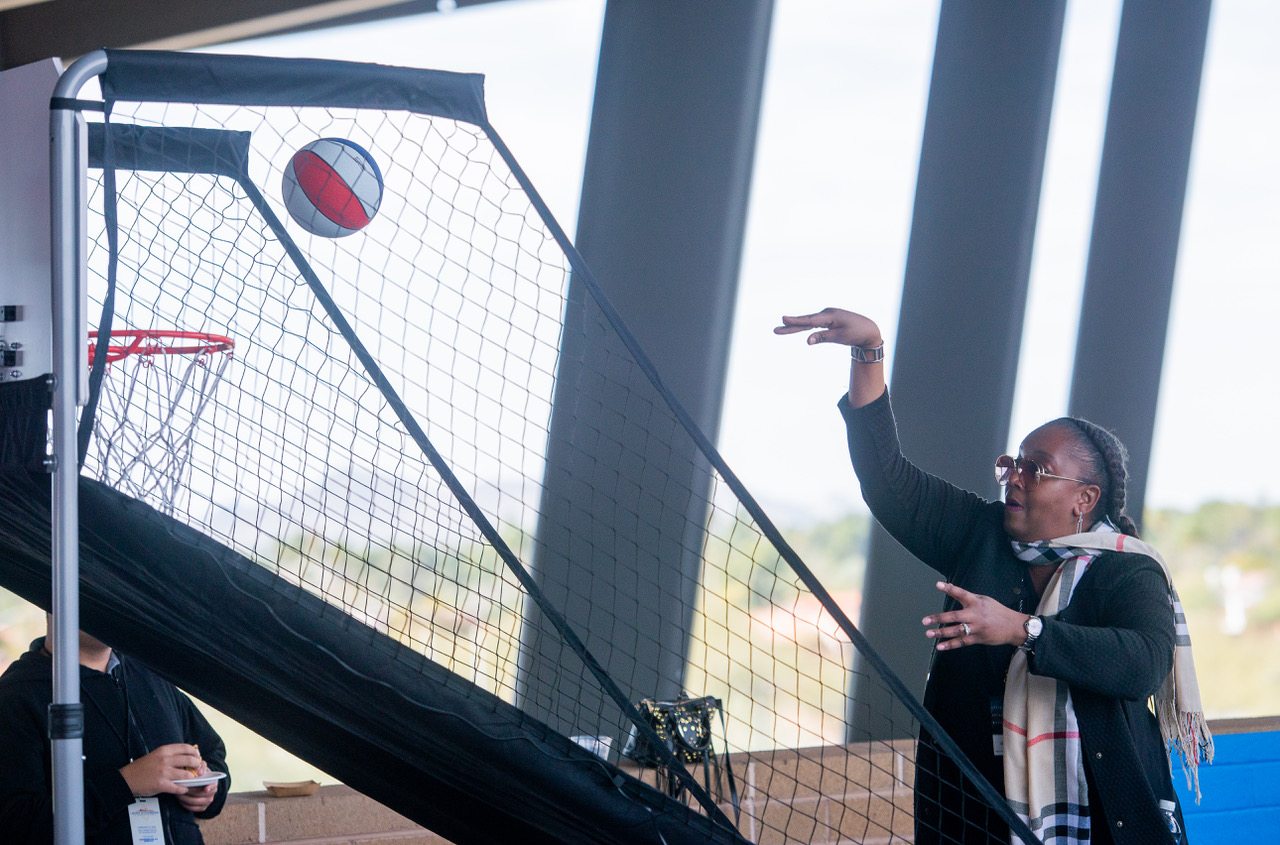 He was on stage set up near home plate of the baseball diamond for a discussion on athletes’ health issues and also leadership awards.