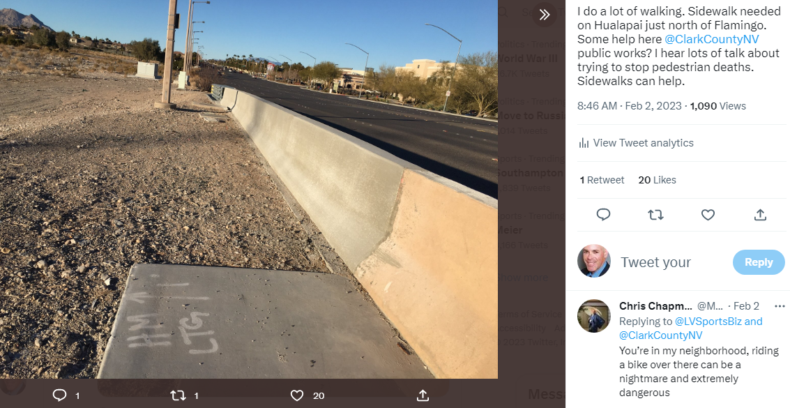 Uh, how about a sidewalk on a busy suburban road near a shopping center, Clark County? Great complete streets job.