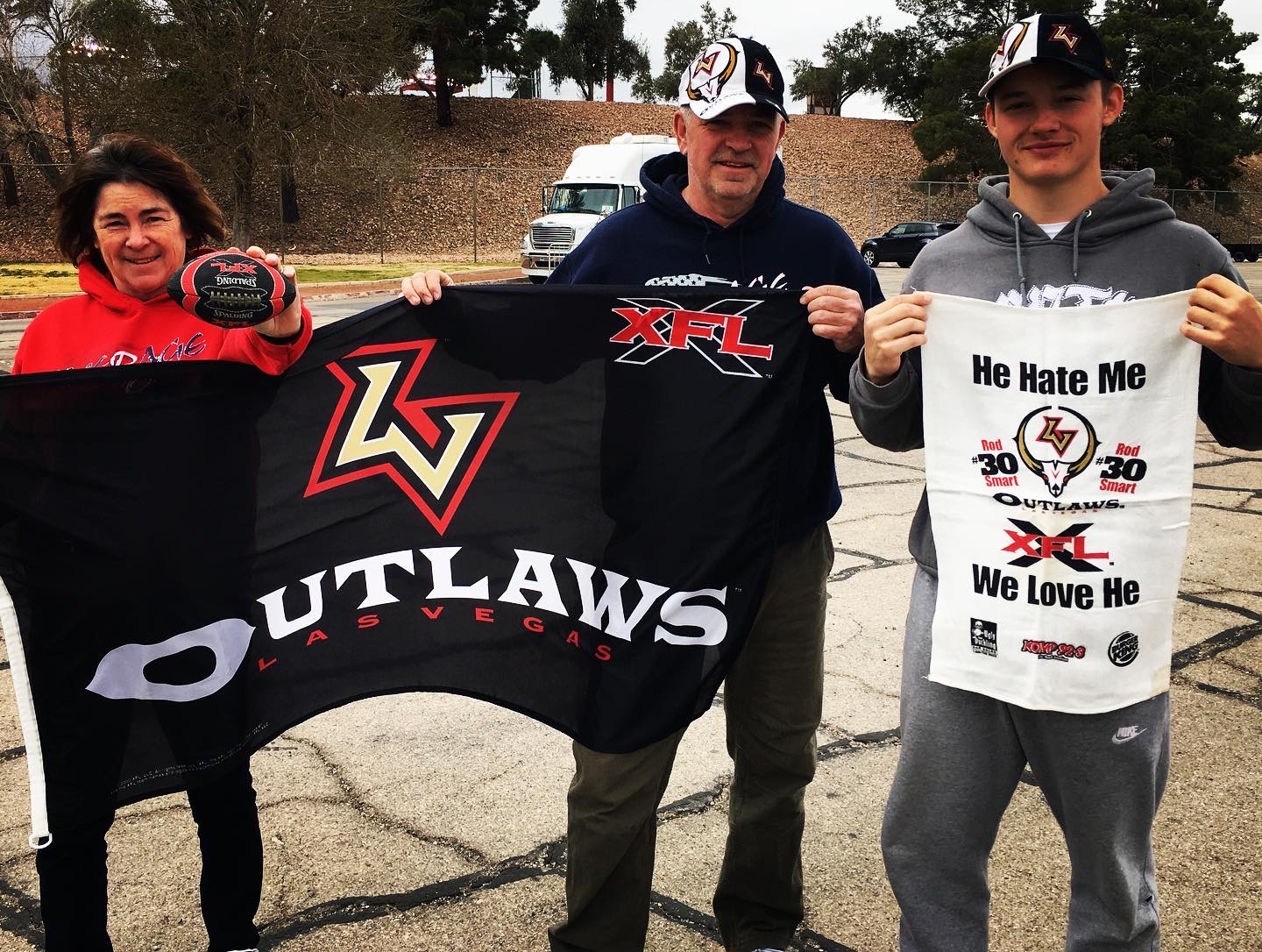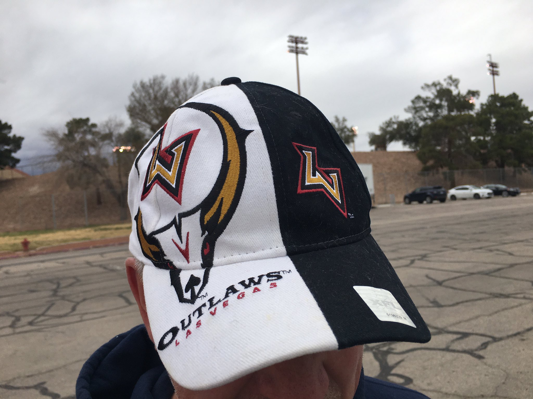 Remarkably, Ben and Kris still had their old Outlaws flags, caps and rally towels. They brought the logo gear today and were among the first batch of tailgaters at the Cashman, which also hosts the Las Vegas Lights soccer team of the United Soccer League.