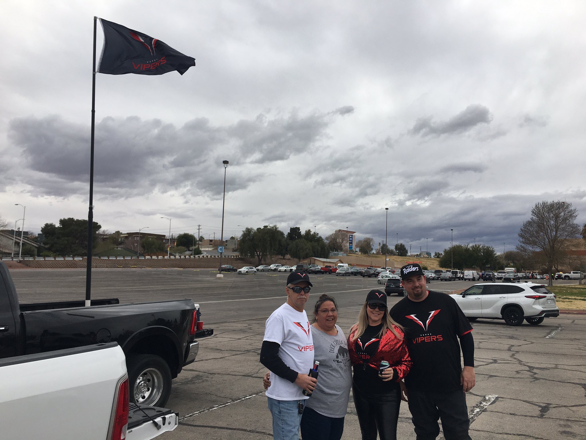 Tailgater and Vipers fan Bill Cooper, who also attended the old XFL Outlaws games at Sam Boyd Stadium, said the original WWE product of the XFL had too much flash and glamour. “Now we’re back to football,” Cooper told LVSportsBiz.com in the Cashman parking lot. Cooper is standing at the far left in the photo below.