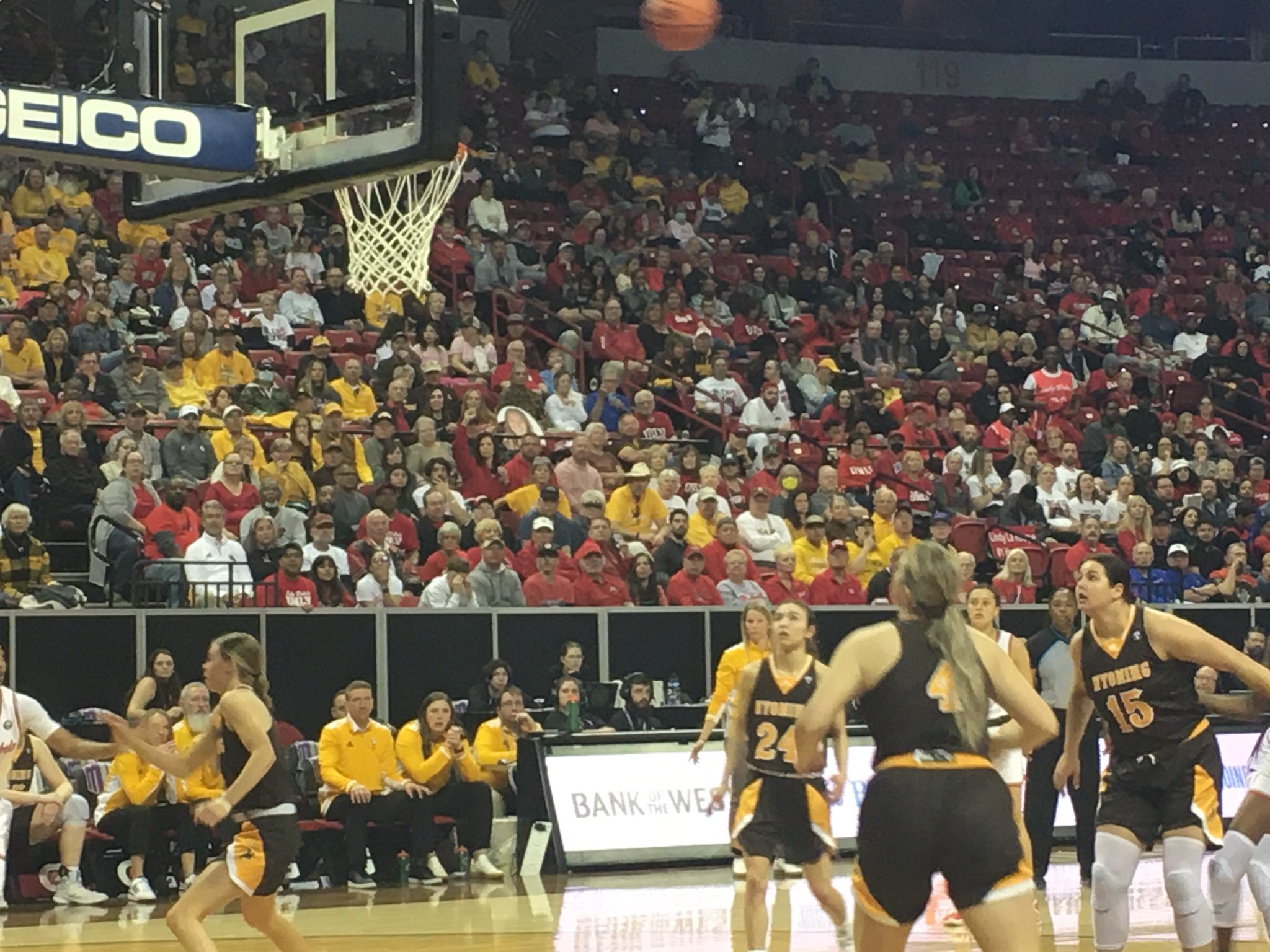 It looked like attendance was in the 3,500 range at Thomas & Mack Center, with an eyeball estimate of about 2,000 UNLV fans and another 1,500 Wyoming fans.